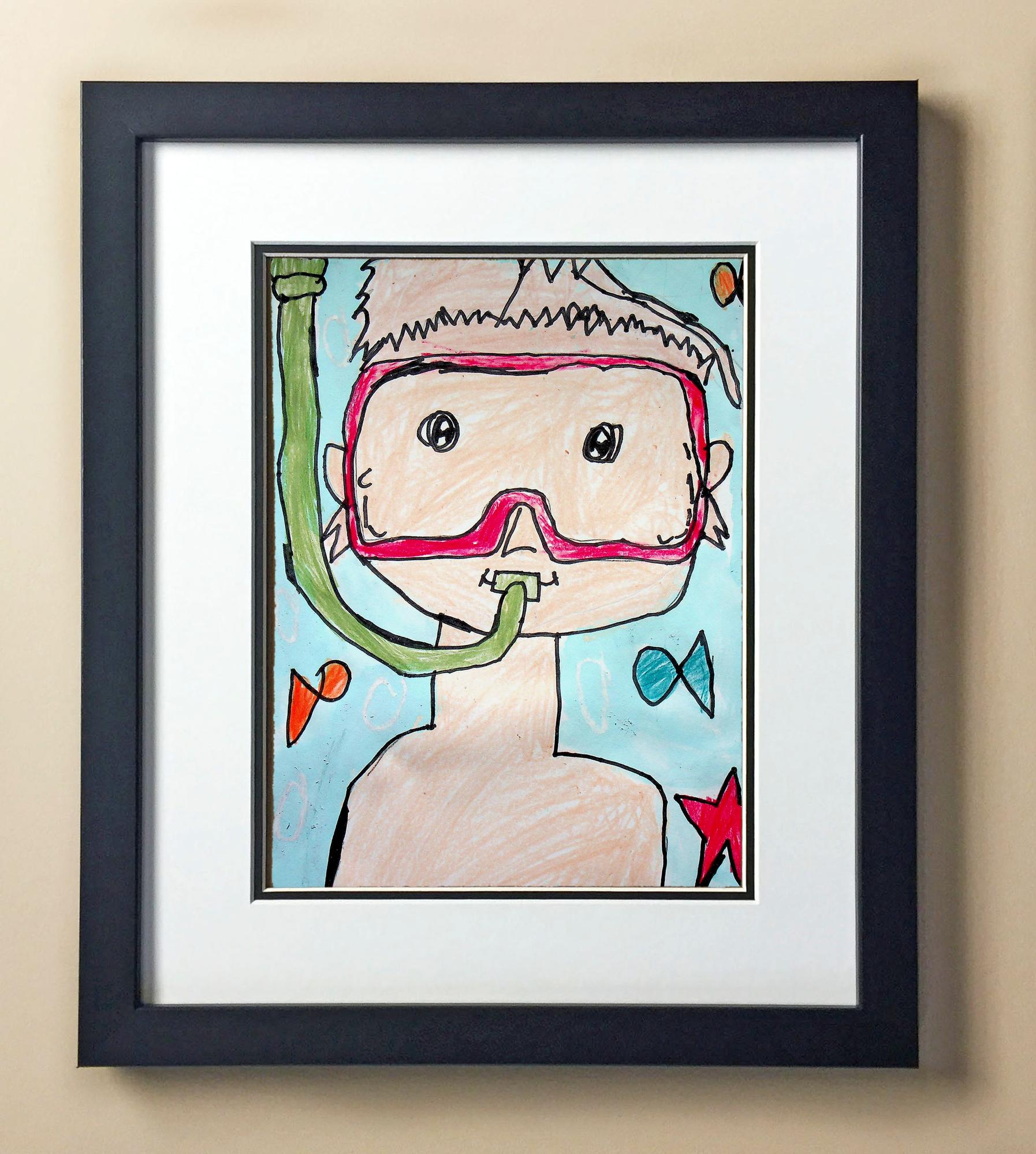 Included with the purchase is the Students Artwork, Frame, double matboard, shatter proof plexiglass, and a ready to hang backerboard with turnbuttons