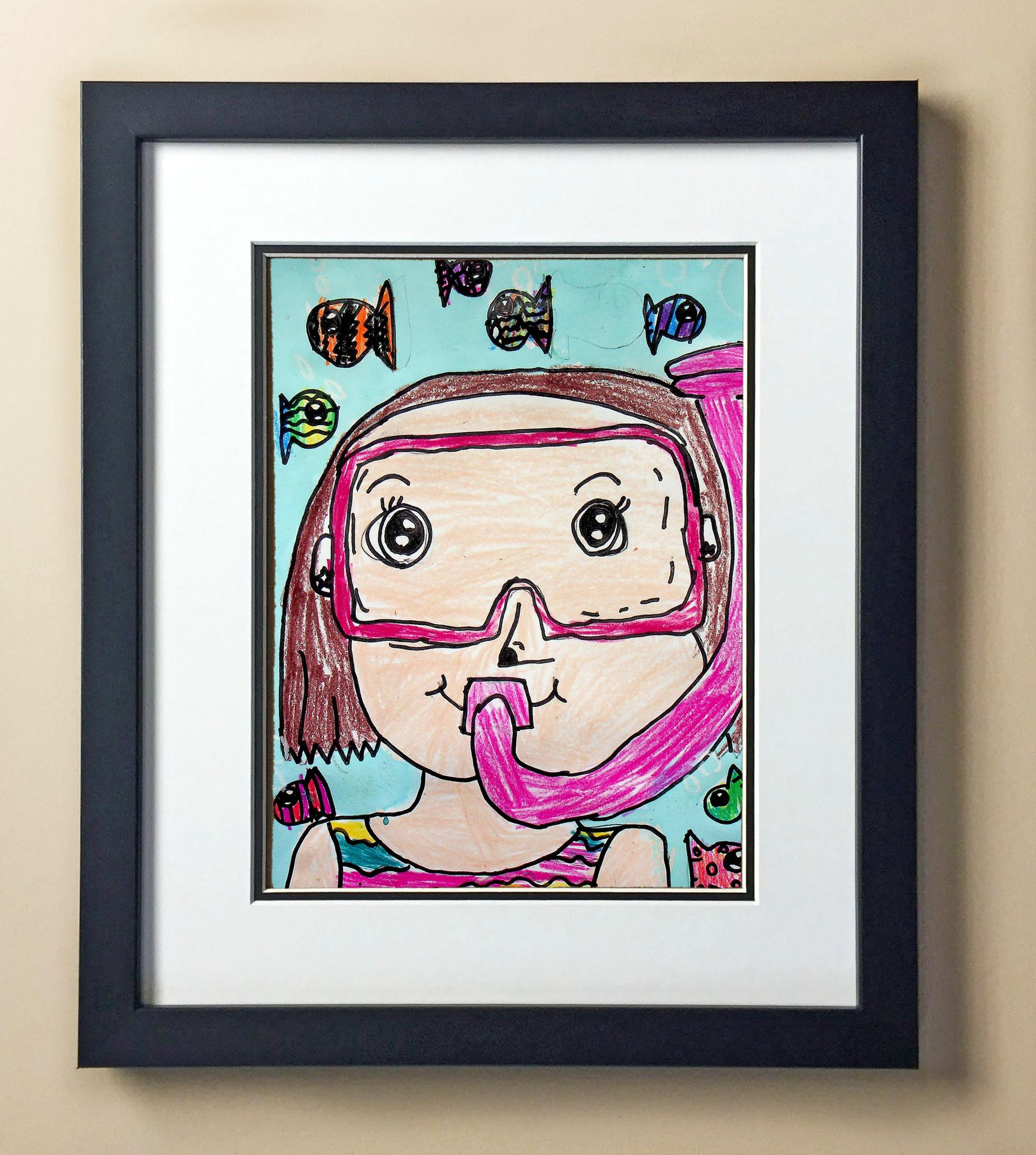 Included with the purchase is the Students Artwork, Frame, double matboard, shatter proof plexiglass, and a ready to hang backerboard with turnbuttons