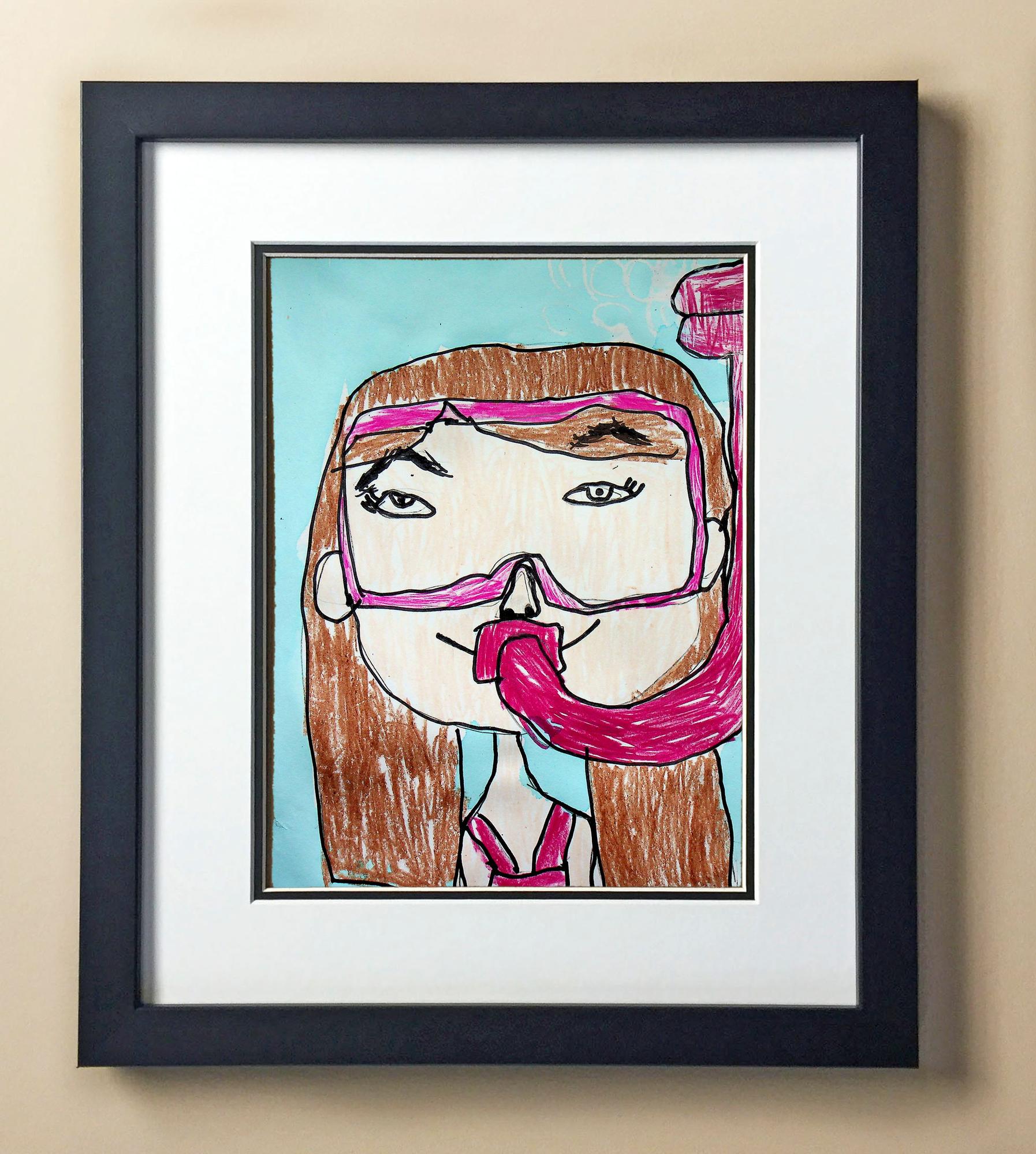 Included with the purchase is the Students Artwork, Frame, double matboard, shatter proof plexiglass, and a ready to hang backerboard with turnbuttons