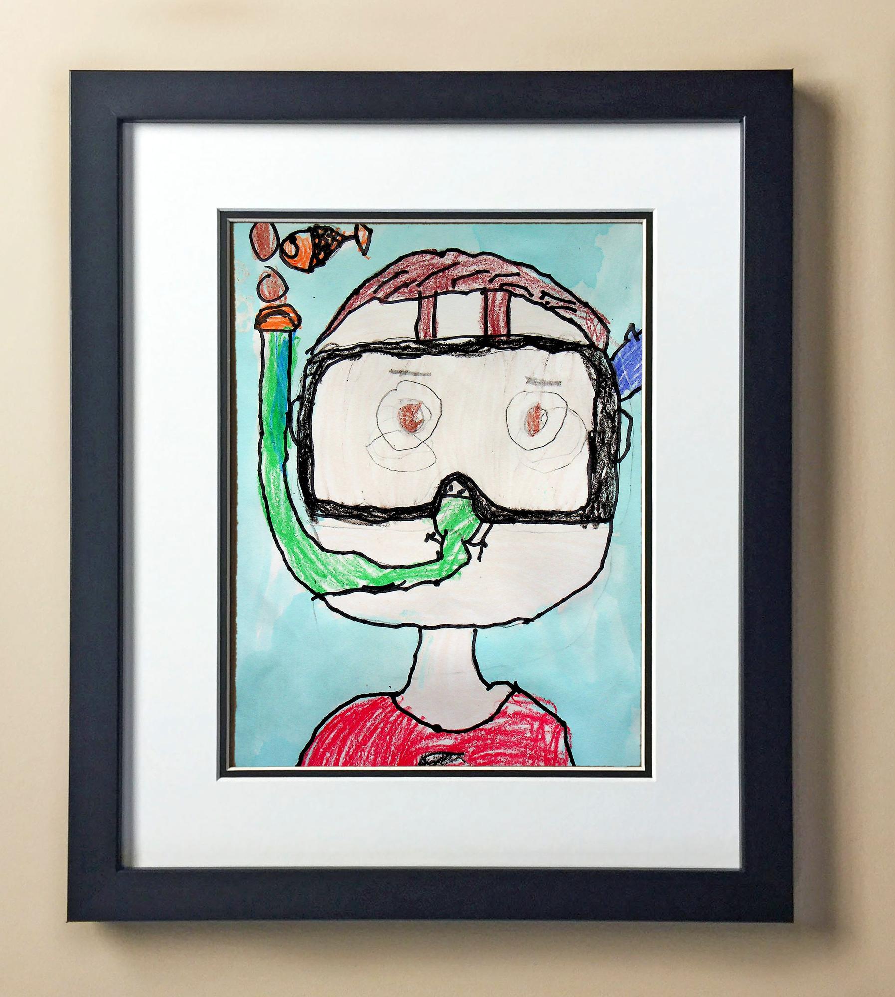 Included with the purchase is the Students Artwork, Frame, double matboard, shatter proof plexiglass, and a ready to hang backerboard with turnbuttons