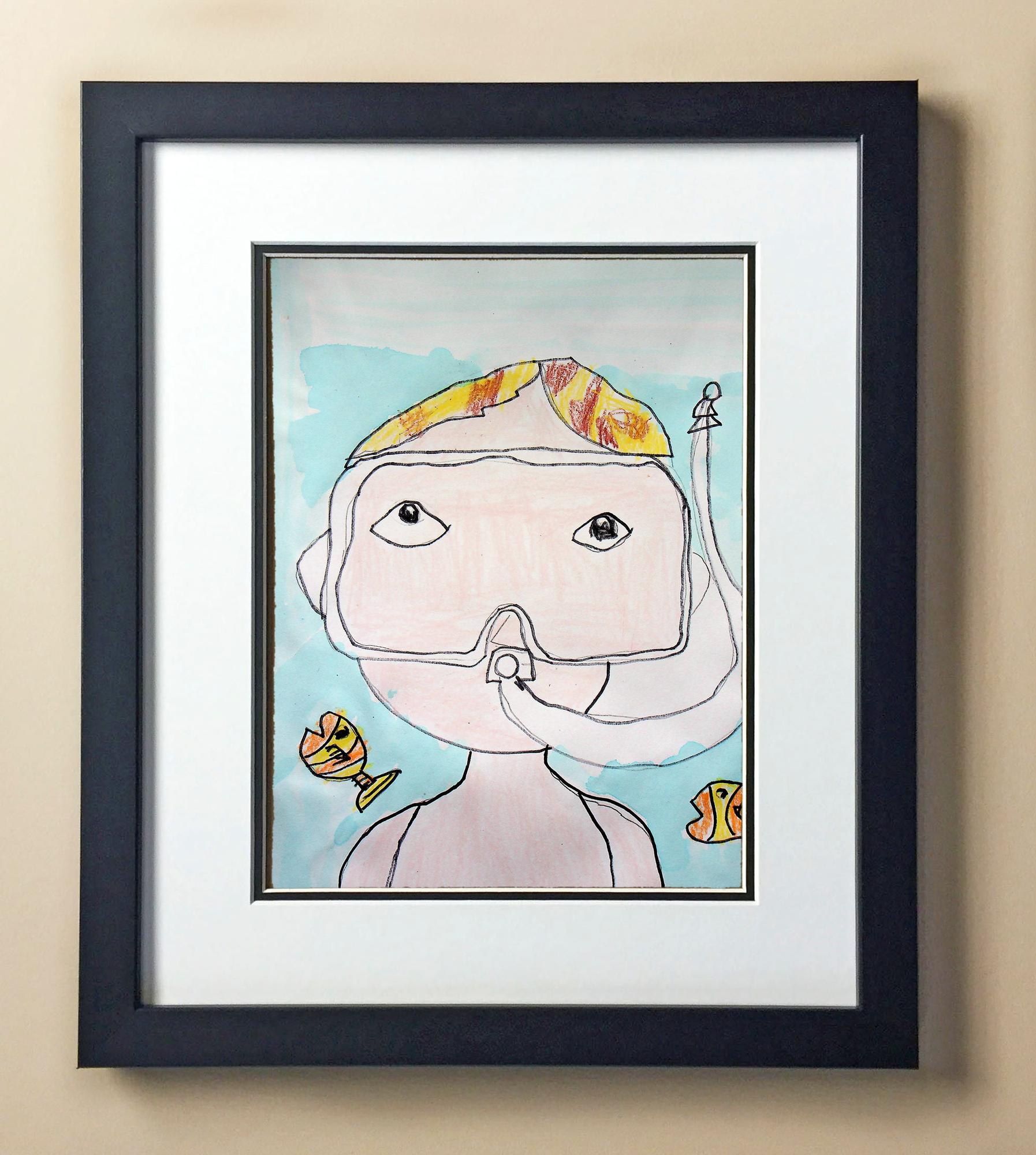 Included with the purchase is the Students Artwork, Frame, double matboard, shatter proof plexiglass, and a ready to hang backerboard with turnbuttons