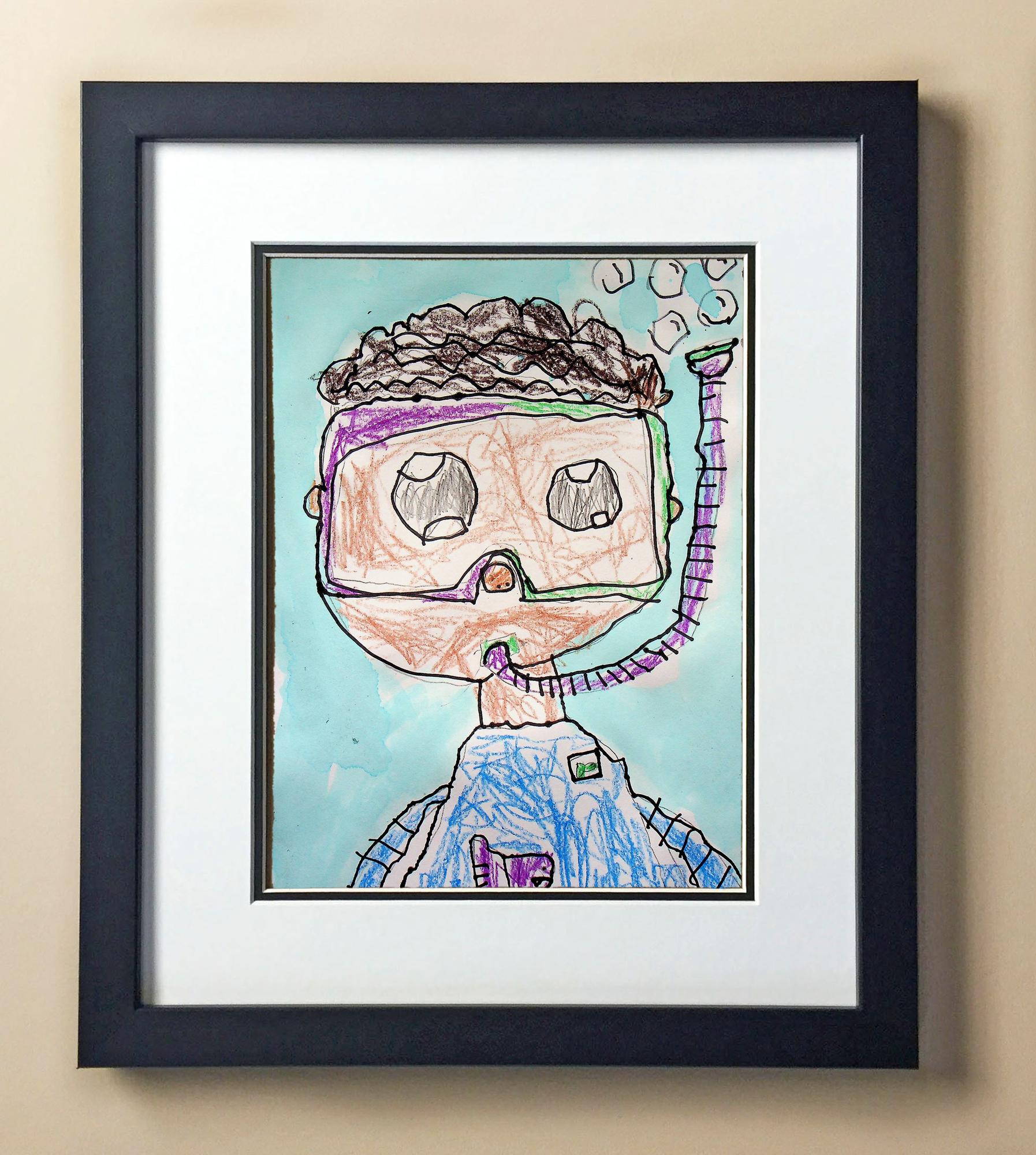 Included with the purchase is the Students Artwork, Frame, double matboard, shatter proof plexiglass, and a ready to hang backerboard with turnbuttons