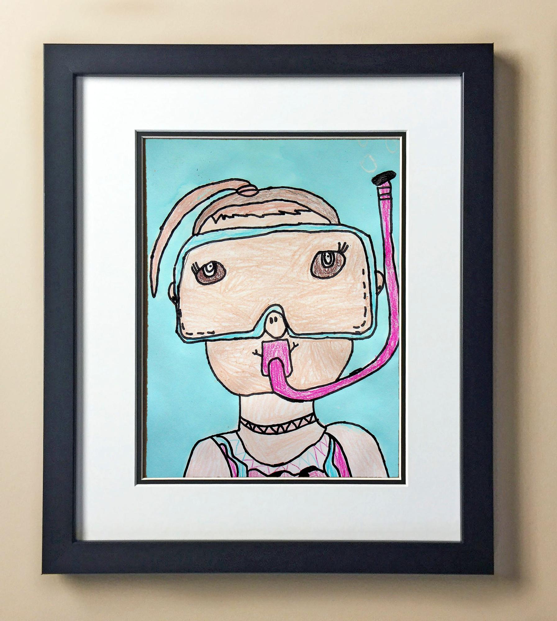 Included with the purchase is the Students Artwork, Frame, double matboard, shatter proof plexiglass, and a ready to hang backerboard with turnbuttons