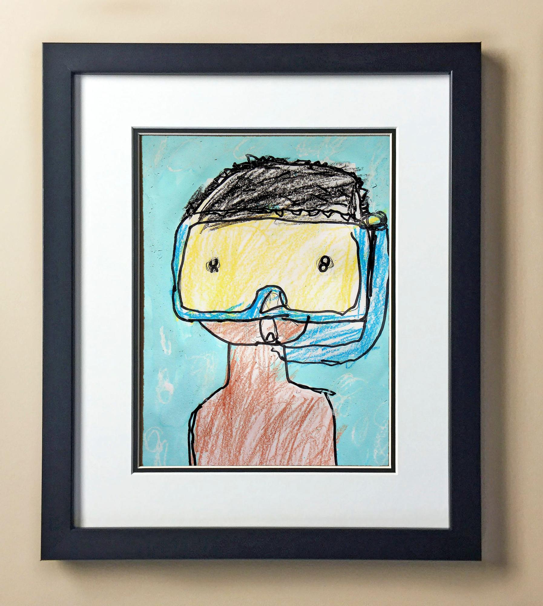 Included with the purchase is the Students Artwork, Frame, double matboard, shatter proof plexiglass, and a ready to hang backerboard with turnbuttons