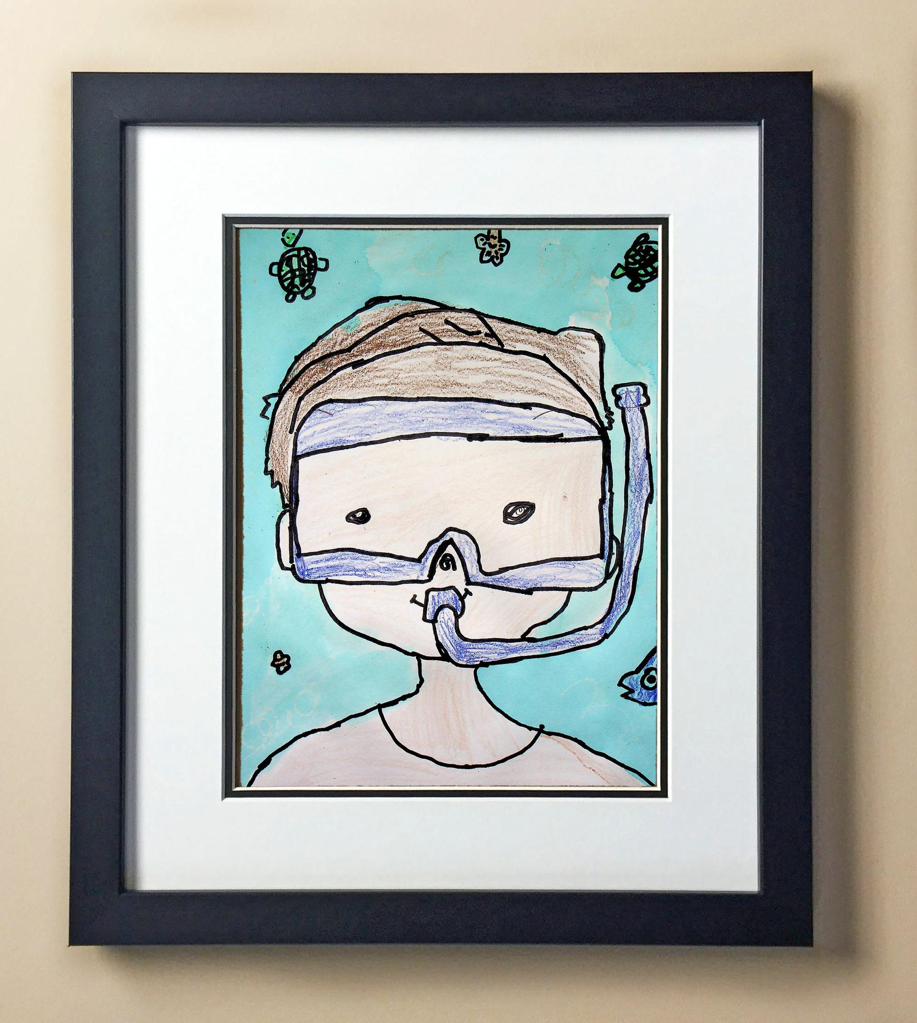 Included with the purchase is the Students Artwork, Frame, double matboard, shatter proof plexiglass, and a ready to hang backerboard with turnbuttons
