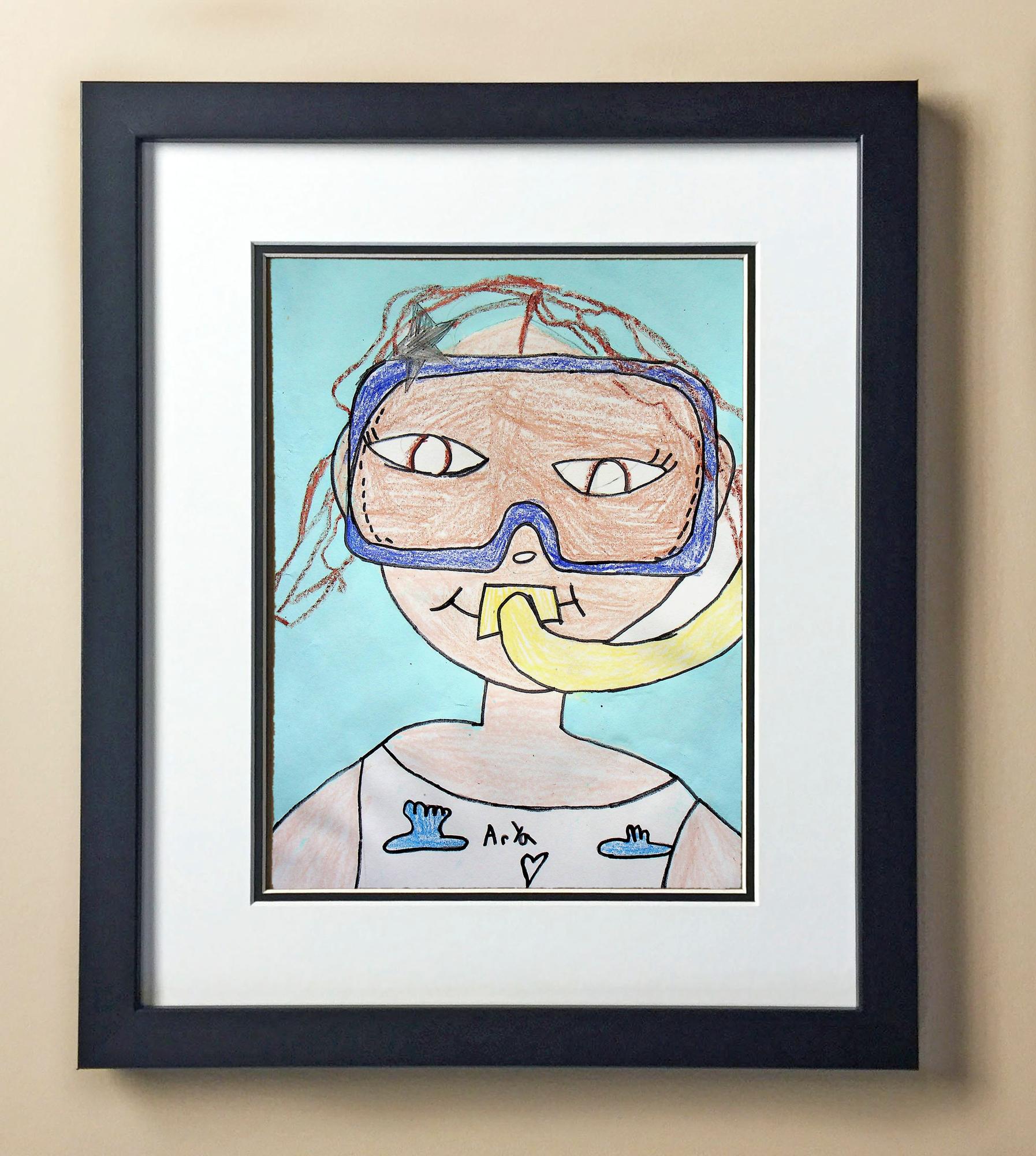 Included with the purchase is the Students Artwork, Frame, double matboard, shatter proof plexiglass, and a ready to hang backerboard with turnbuttons