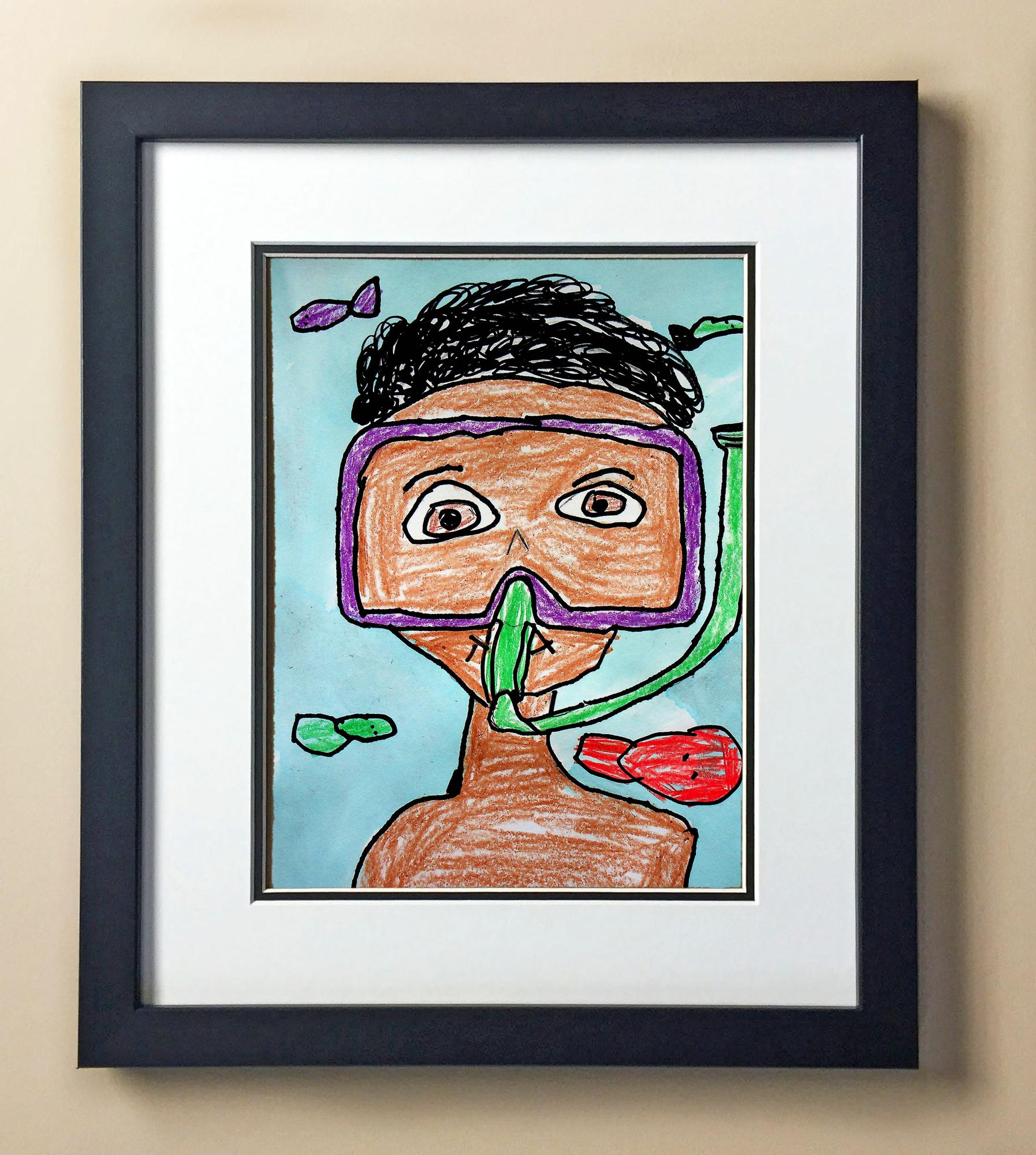 Included with the purchase is the Students Artwork, Frame, double matboard, shatter proof plexiglass, and a ready to hang backerboard with turnbuttons