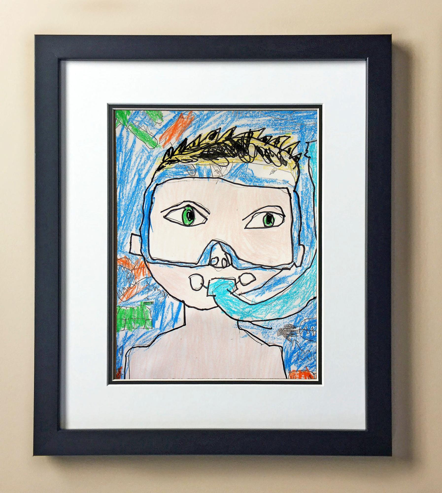 Included with the purchase is the Students Artwork, Frame, double matboard, shatter proof plexiglass, and a ready to hang backerboard with turnbuttons