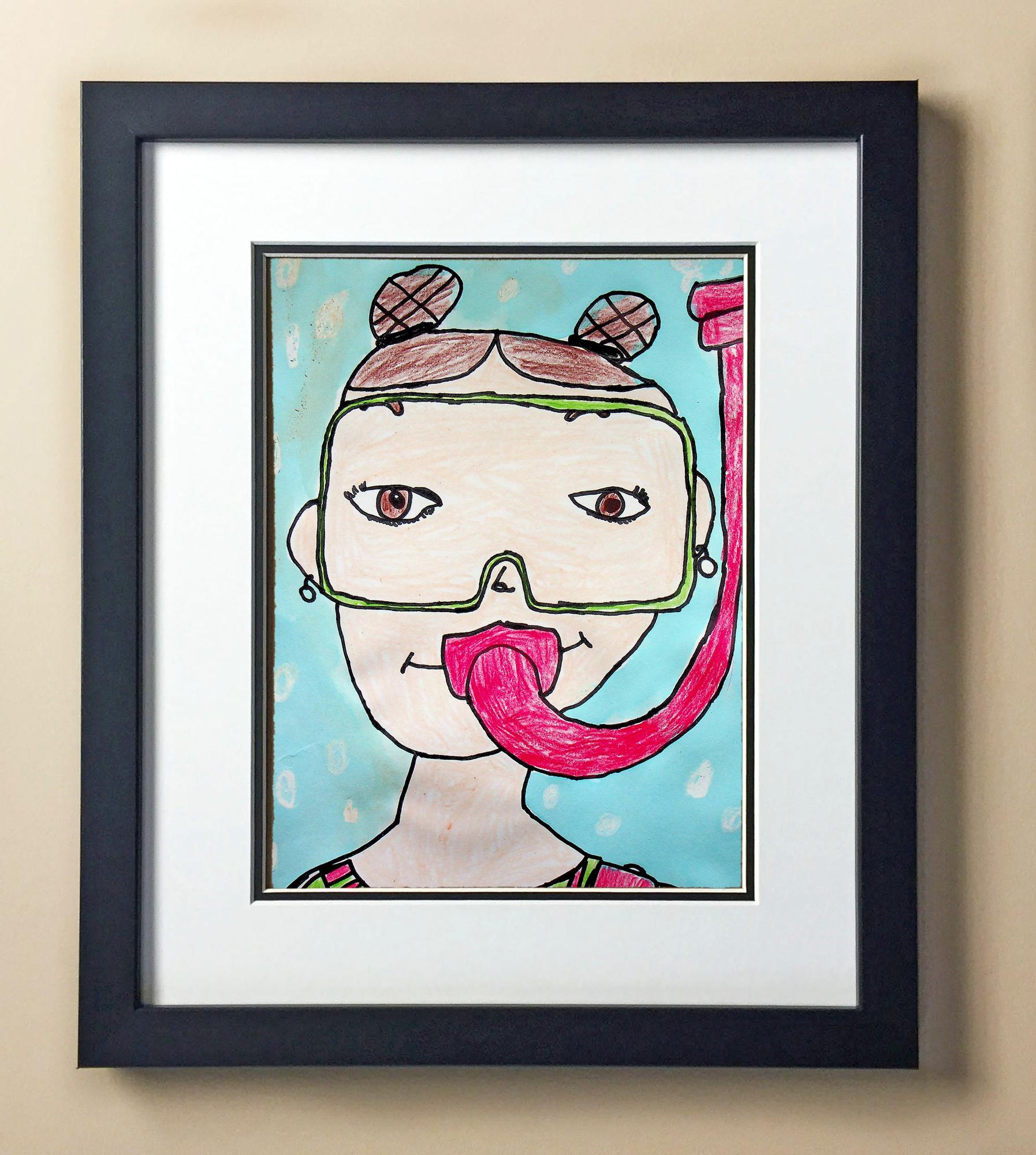 Included with the purchase is the Students Artwork, Frame, double matboard, shatter proof plexiglass, and a ready to hang backerboard with turnbuttons