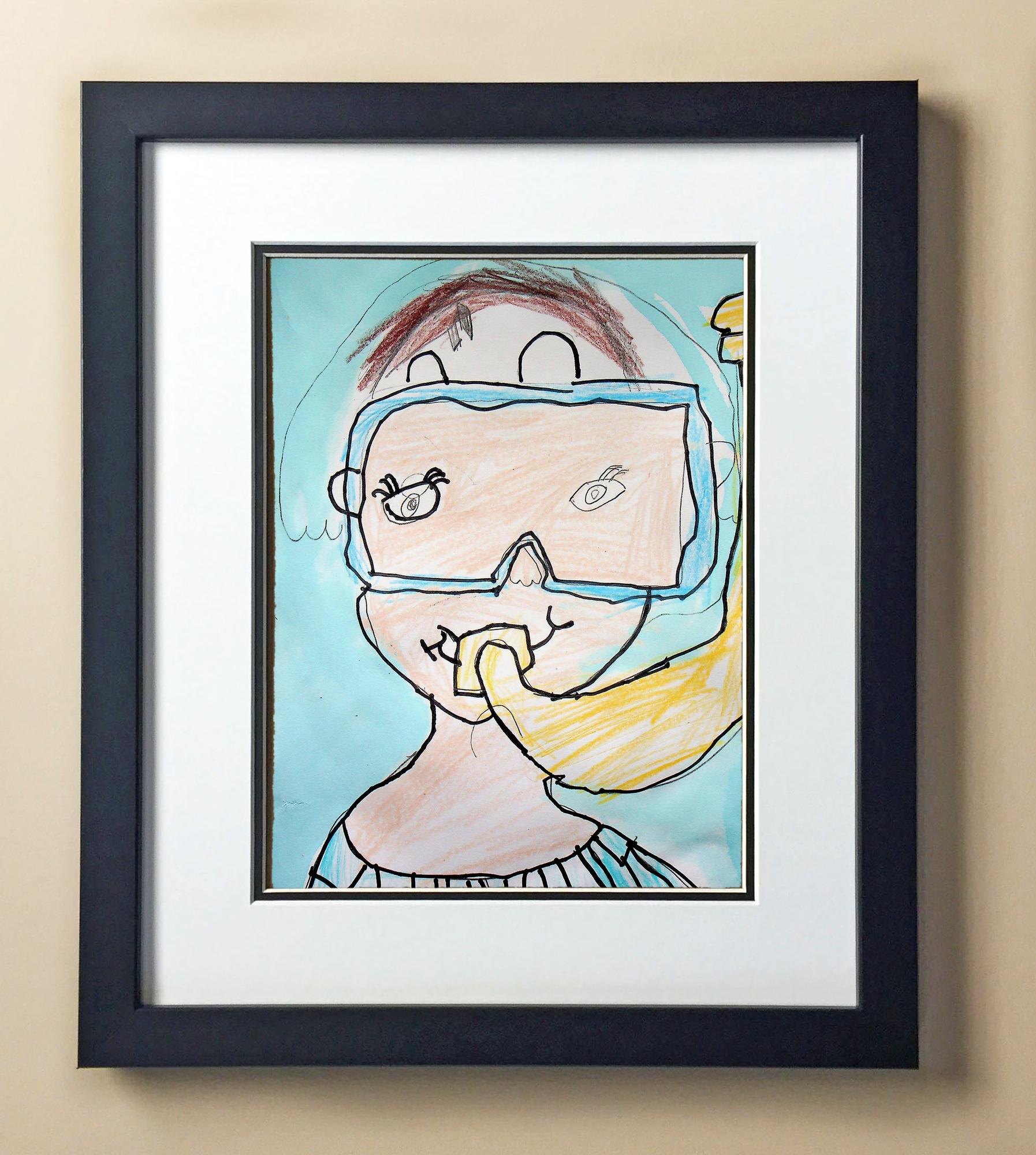 Included with the purchase is the Students Artwork, Frame, double matboard, shatter proof plexiglass, and a ready to hang backerboard with turnbuttons