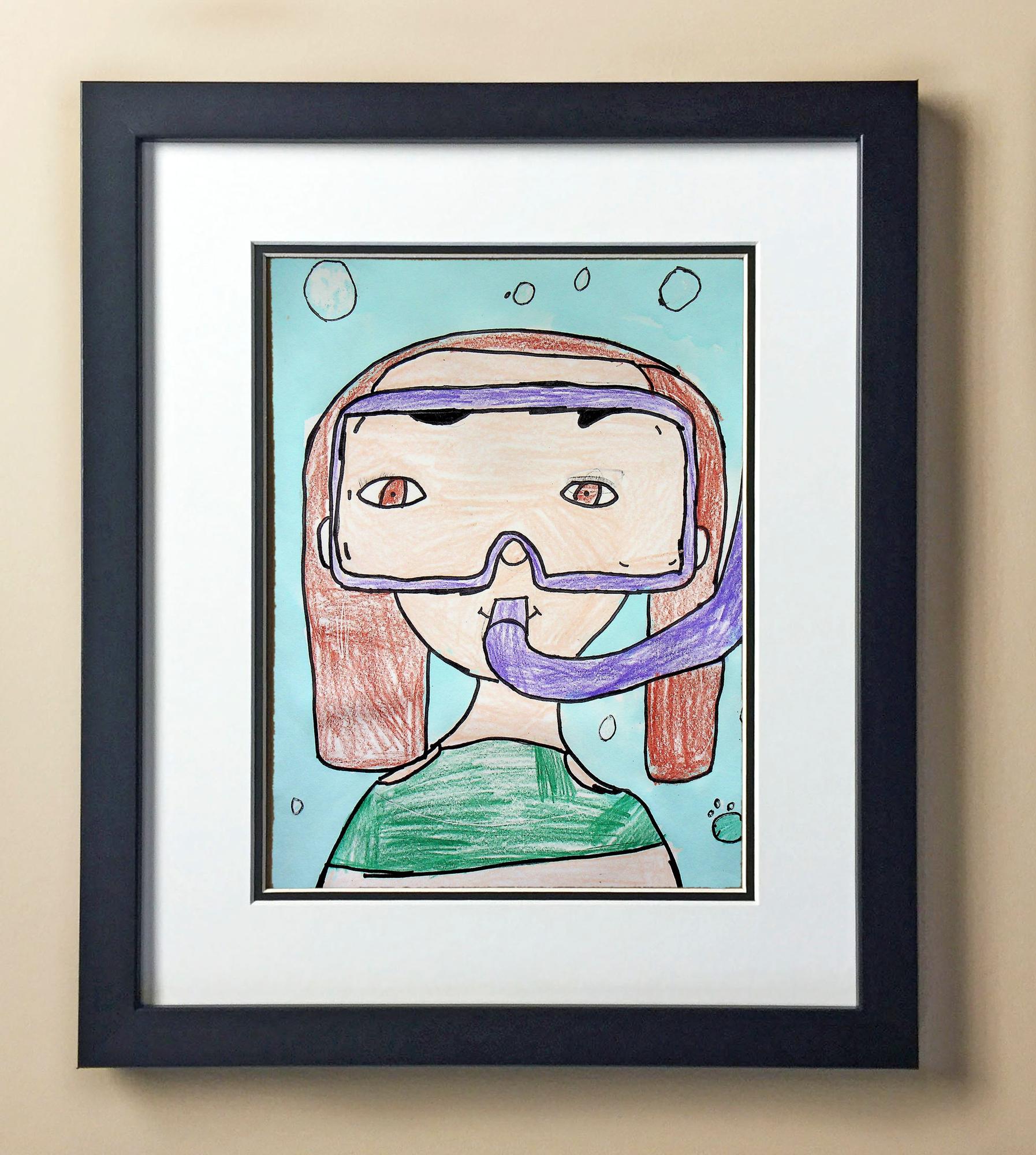 Included with the purchase is the Students Artwork, Frame, double matboard, shatter proof plexiglass, and a ready to hang backerboard with turnbuttons