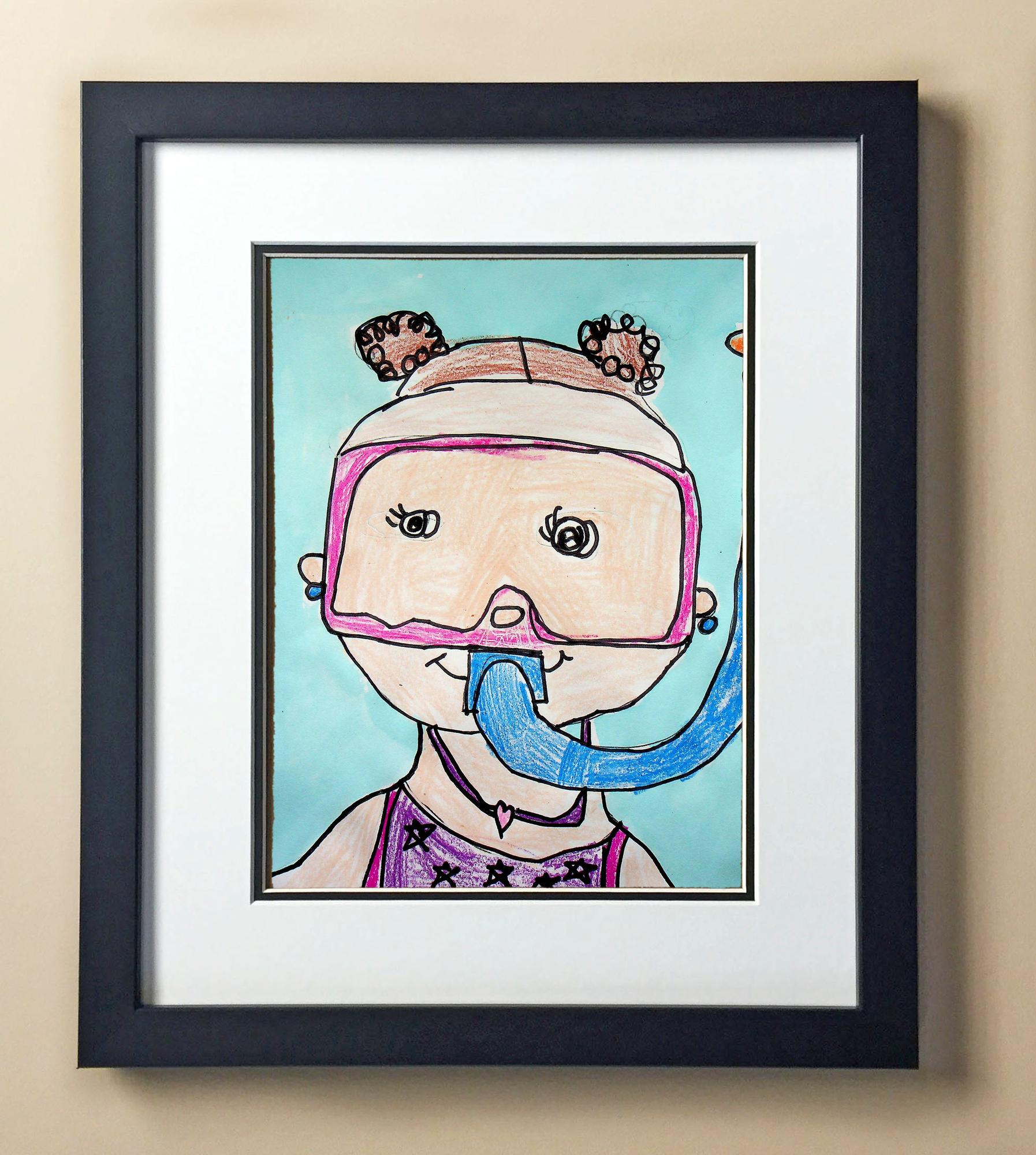 Included with the purchase is the Students Artwork, Frame, double matboard, shatter proof plexiglass, and a ready to hang backerboard with turnbuttons