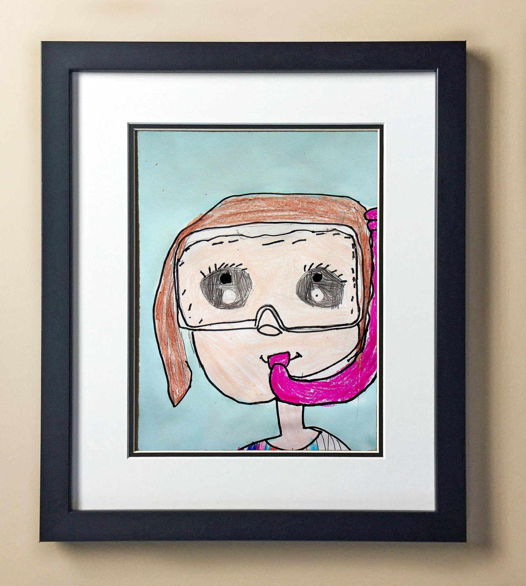 Included with the purchase is the Students Artwork, Frame, double matboard, shatter proof plexiglass, and a ready to hang backerboard with turnbuttons