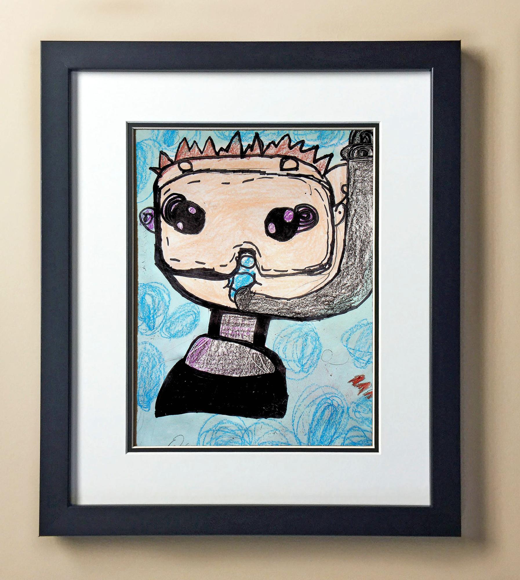 Included with the purchase is the Students Artwork, Frame, double matboard, shatter proof plexiglass, and a ready to hang backerboard with turnbuttons