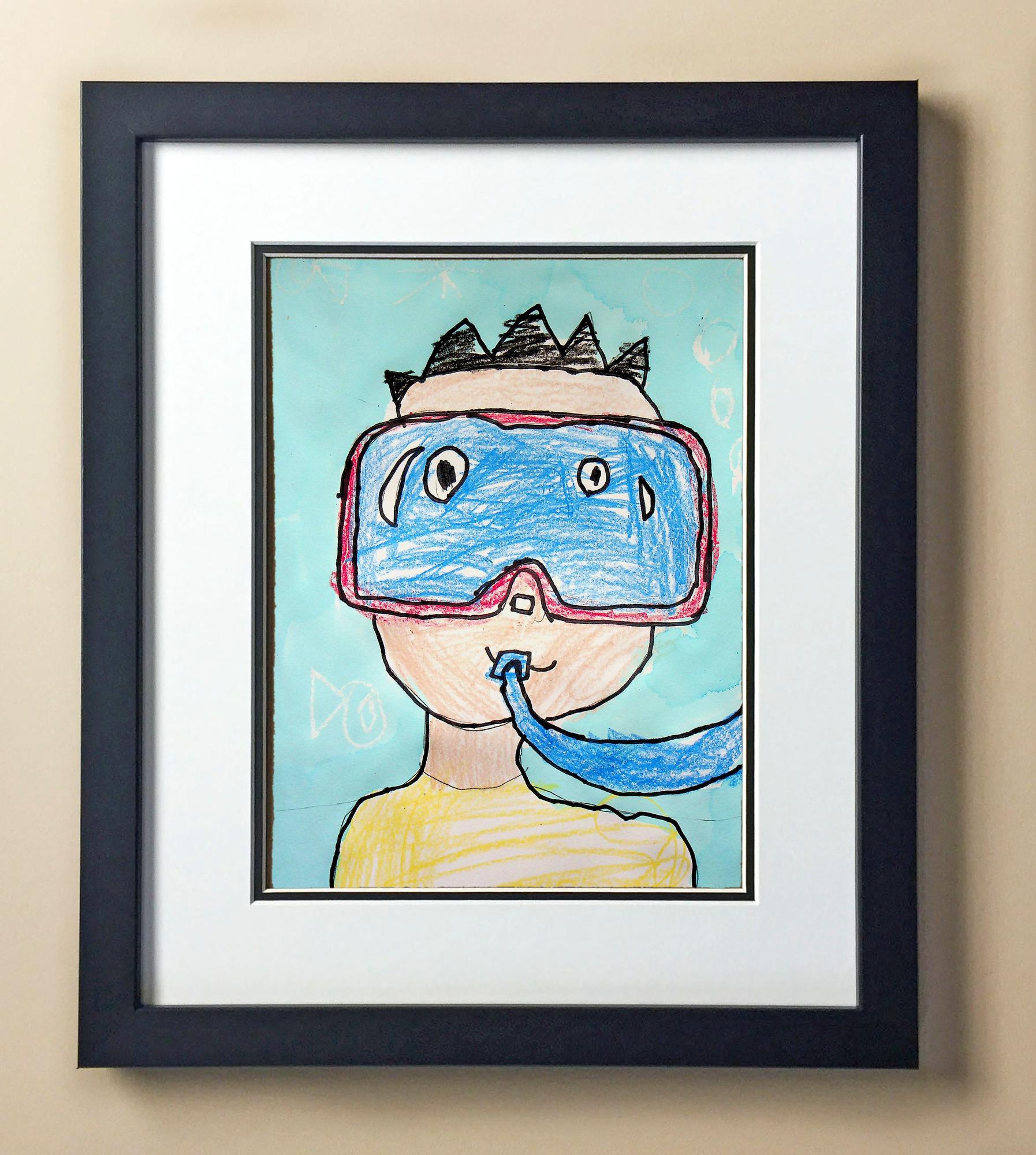 Included with the purchase is the Students Artwork, Frame, double matboard, shatter proof plexiglass, and a ready to hang backerboard with turnbuttons