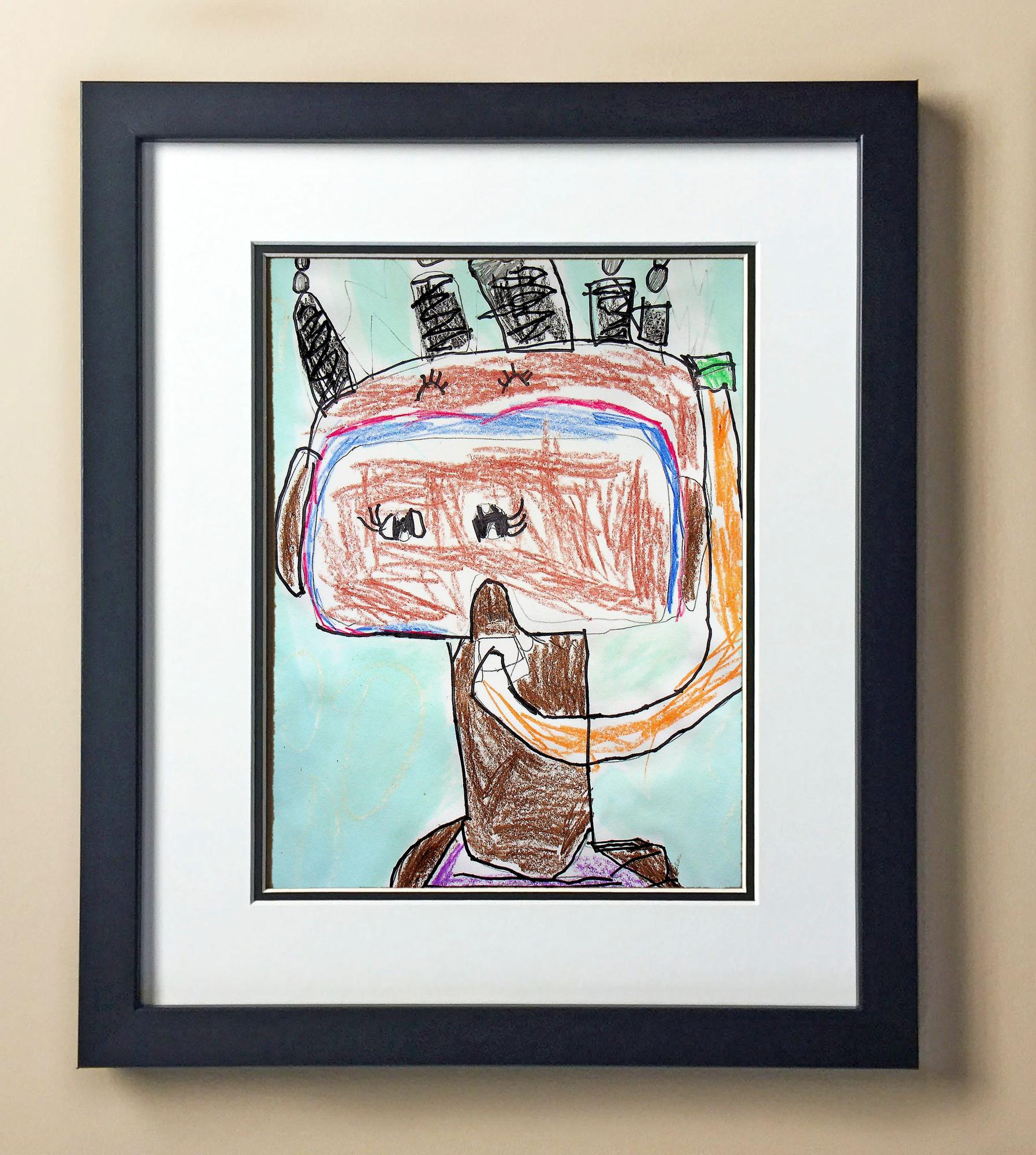 Included with the purchase is the Students Artwork, Frame, double matboard, shatter proof plexiglass, and a ready to hang backerboard with turnbuttons