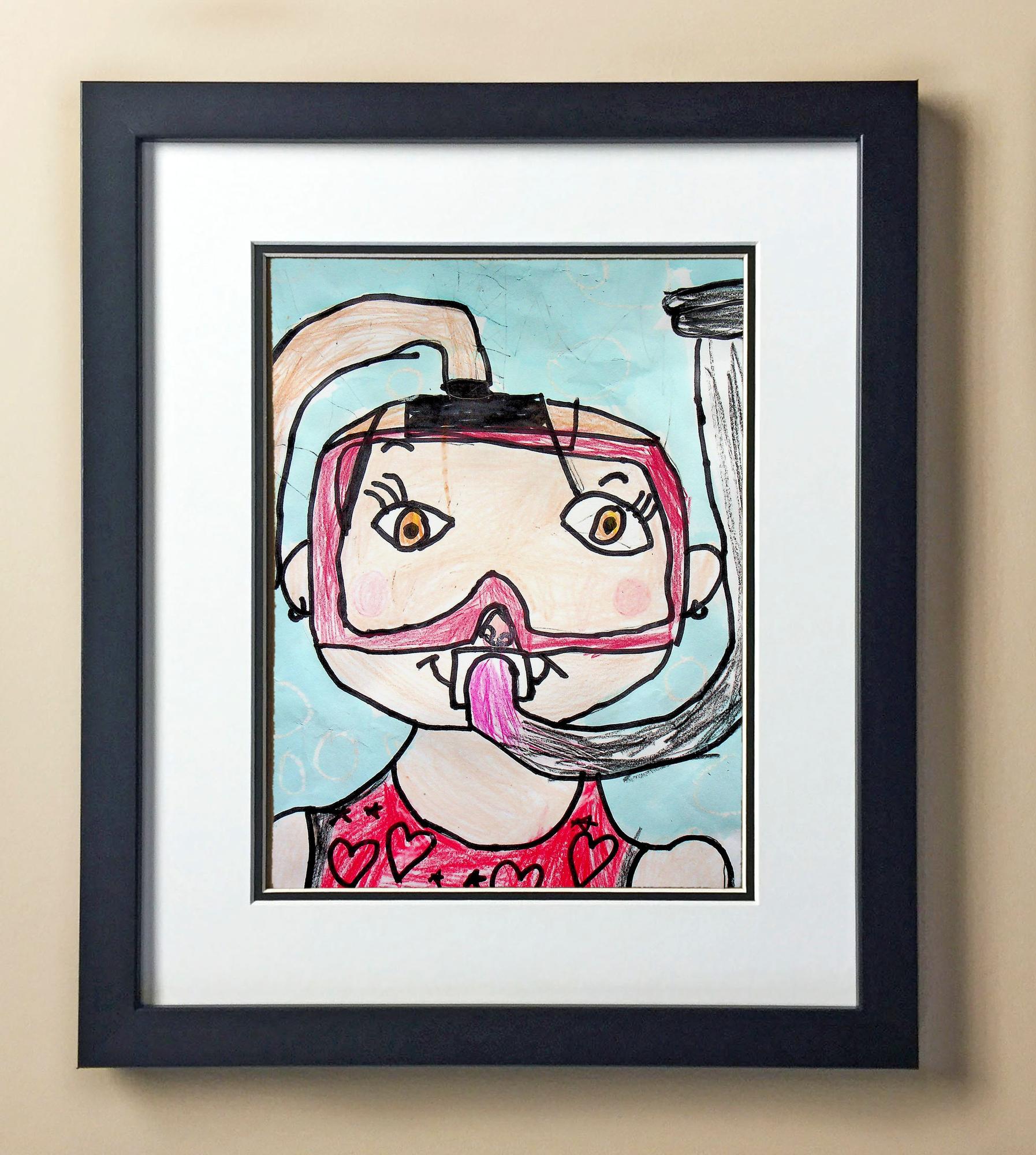 Included with the purchase is the Students Artwork, Frame, double matboard, shatter proof plexiglass, and a ready to hang backerboard with turnbuttons