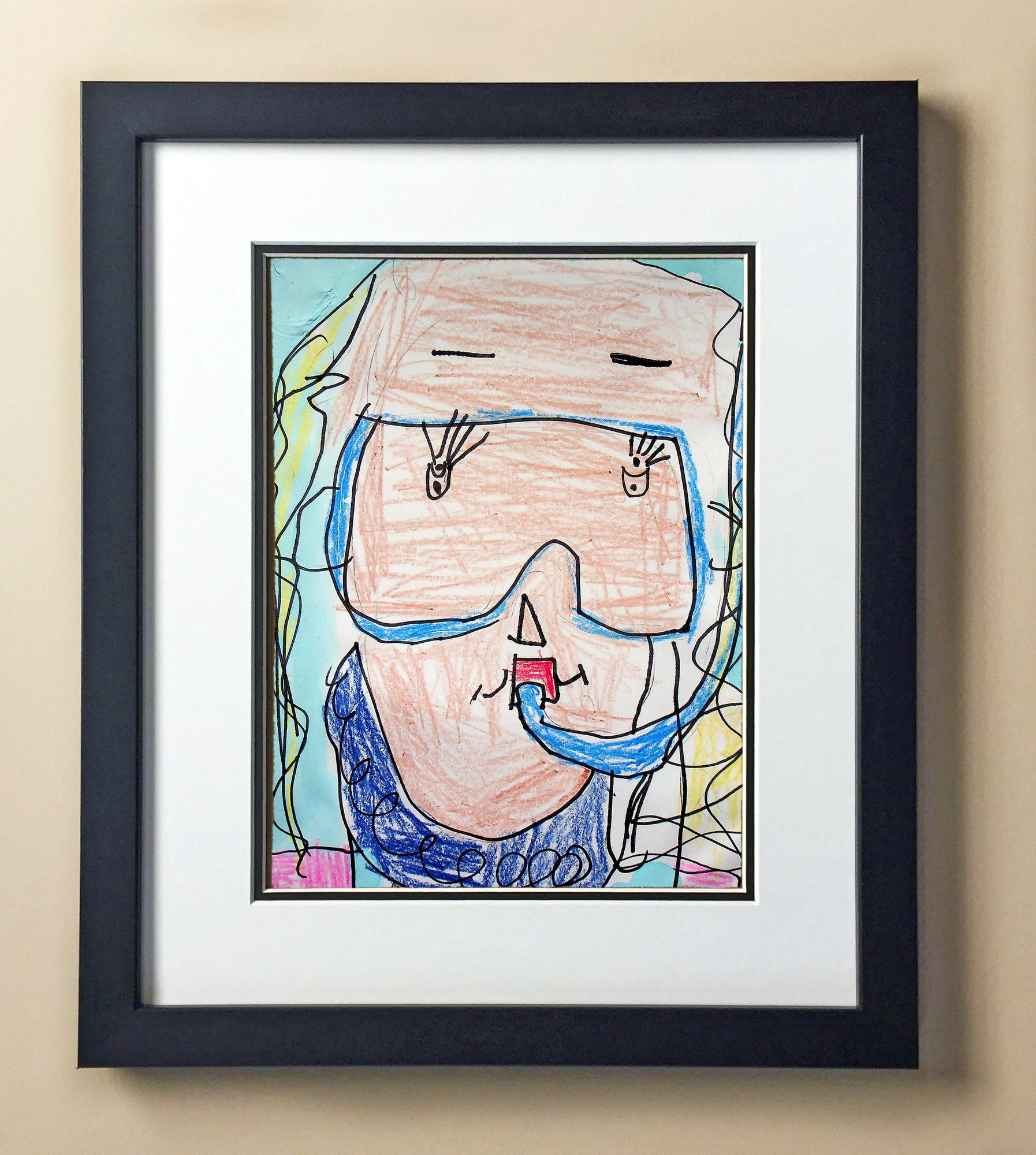 Included with the purchase is the Students Artwork, Frame, double matboard, shatter proof plexiglass, and a ready to hang backerboard with turnbuttons