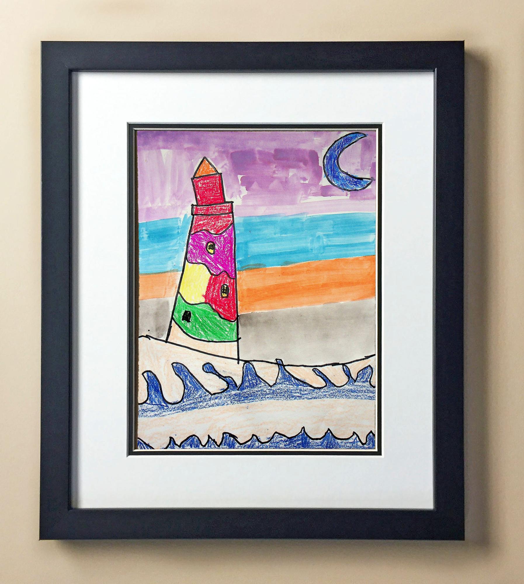 Included with the purchase is the Students Artwork, Frame, double matboard, shatter proof plexiglass, and a ready to hang backerboard with turnbuttons