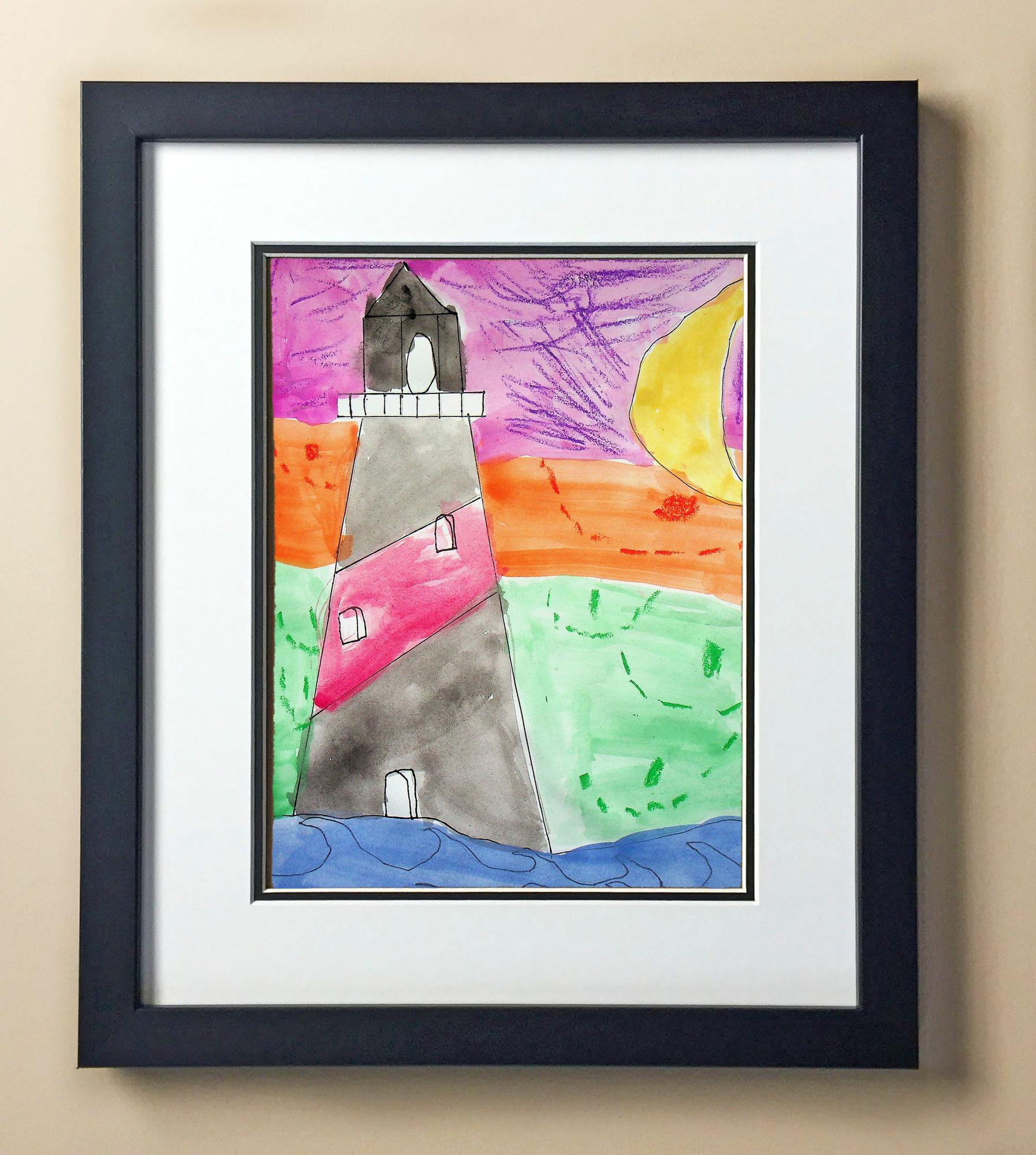 Included with the purchase is the Students Artwork, Frame, double matboard, shatter proof plexiglass, and a ready to hang backerboard with turnbuttons