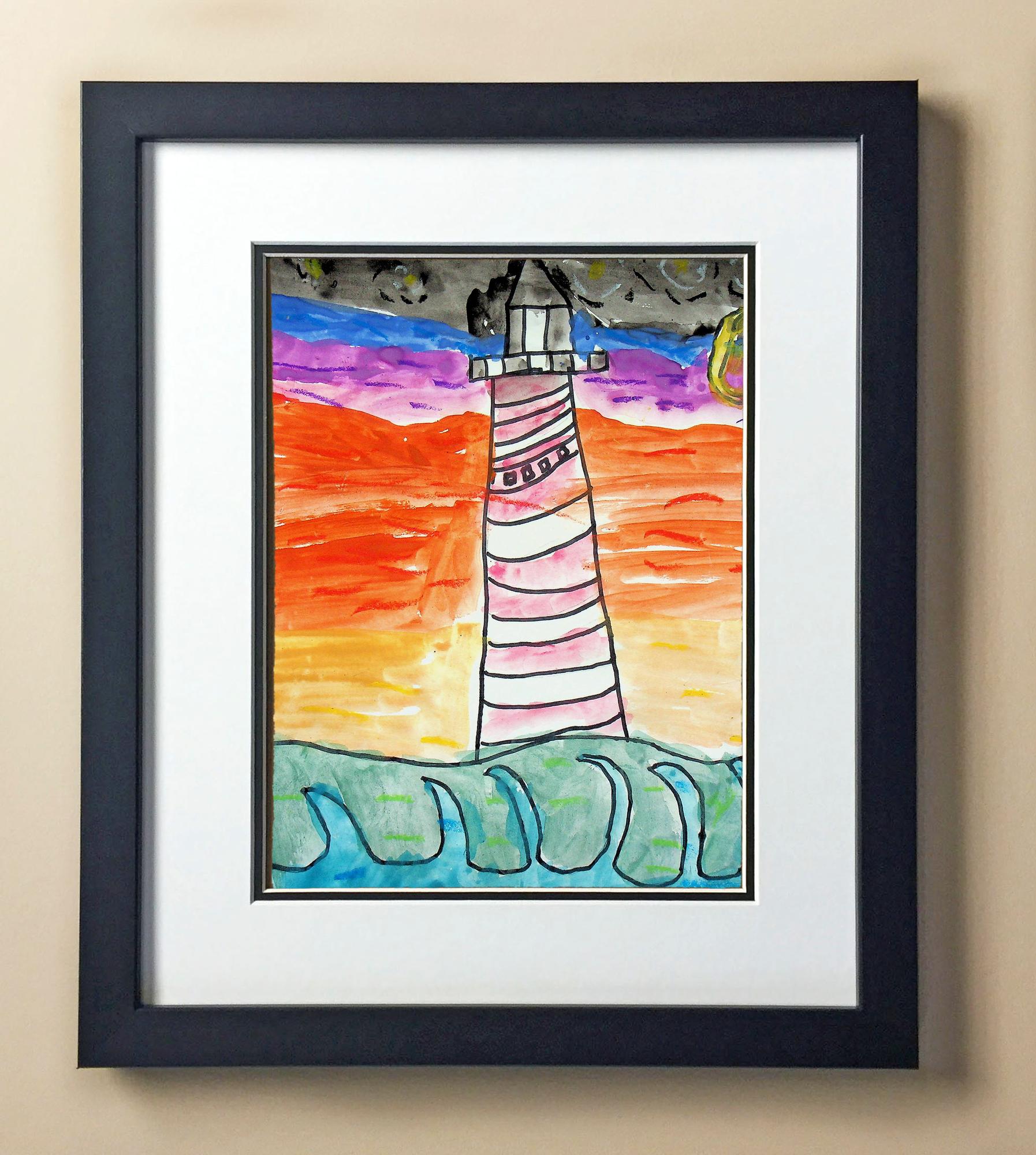 Included with the purchase is the Students Artwork, Frame, double matboard, shatter proof plexiglass, and a ready to hang backerboard with turnbuttons