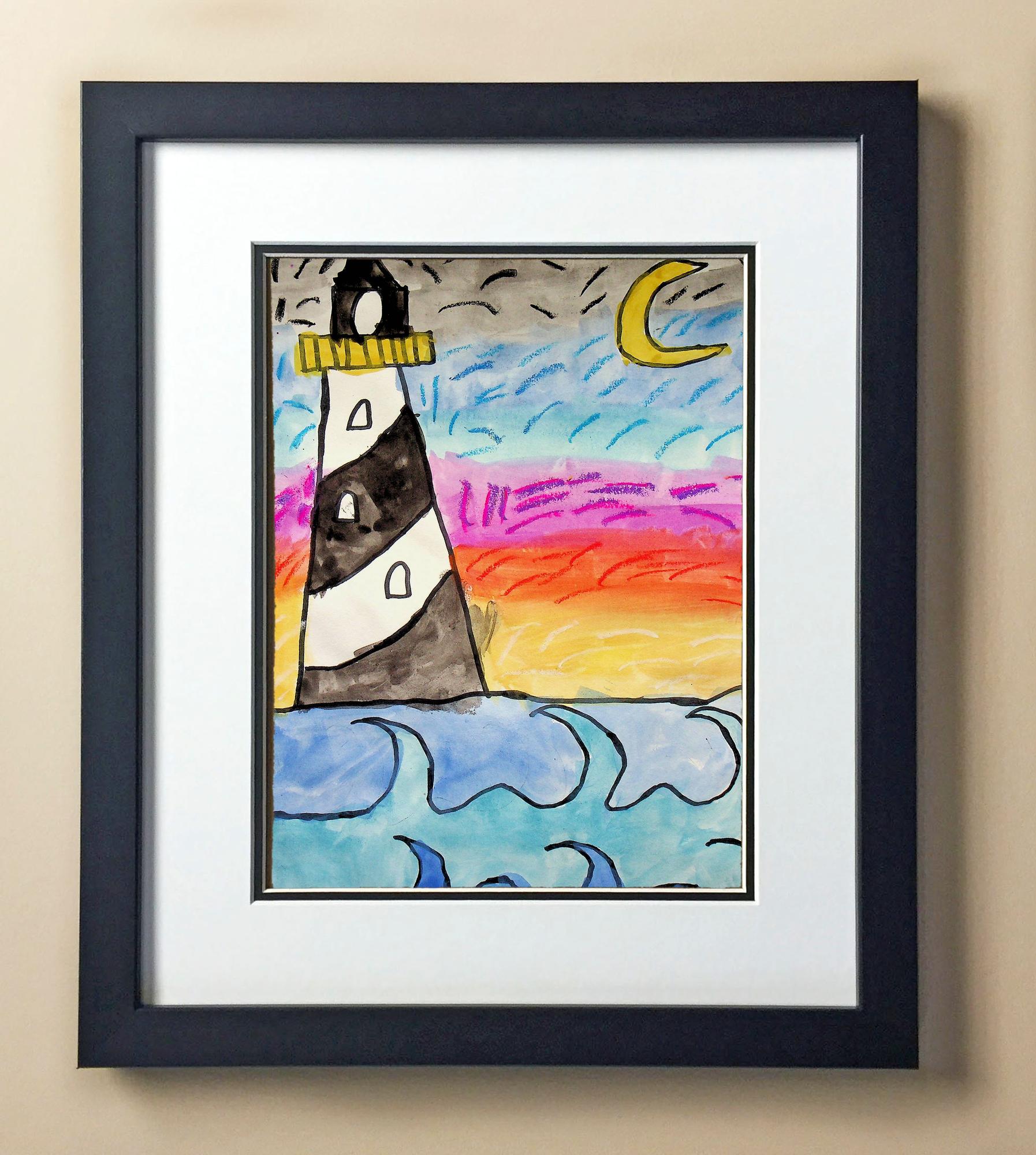 Included with the purchase is the Students Artwork, Frame, double matboard, shatter proof plexiglass, and a ready to hang backerboard with turnbuttons