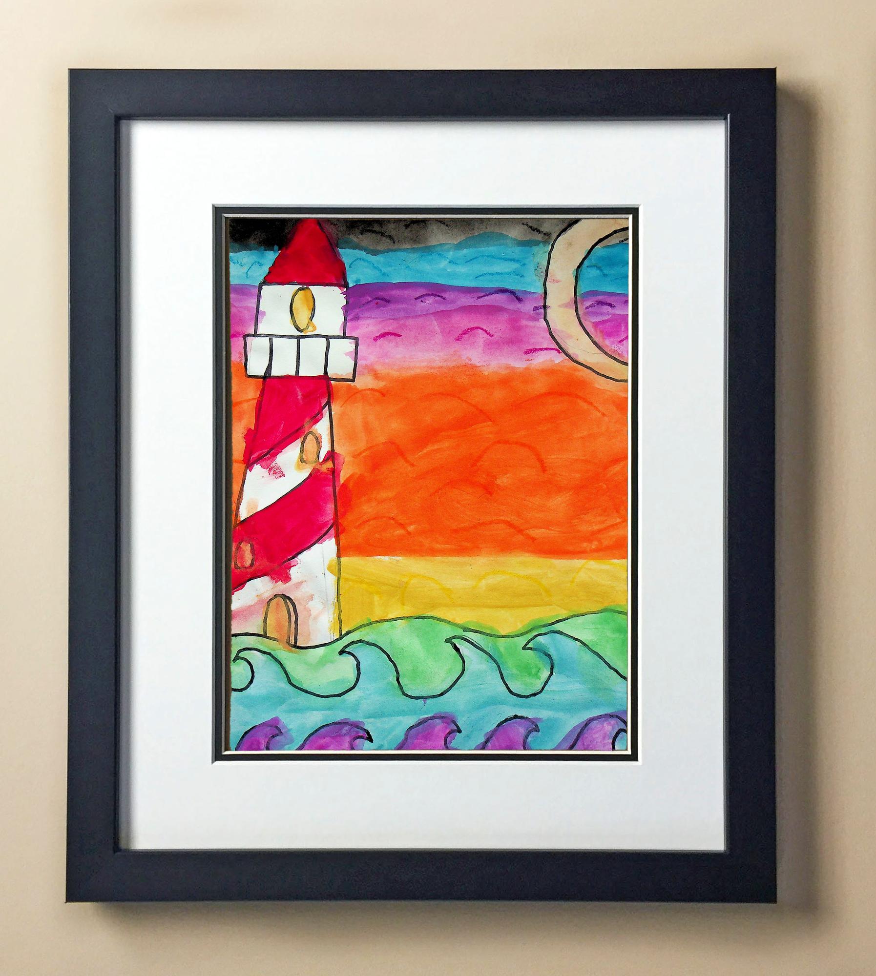 Included with the purchase is the Students Artwork, Frame, double matboard, shatter proof plexiglass, and a ready to hang backerboard with turnbuttons