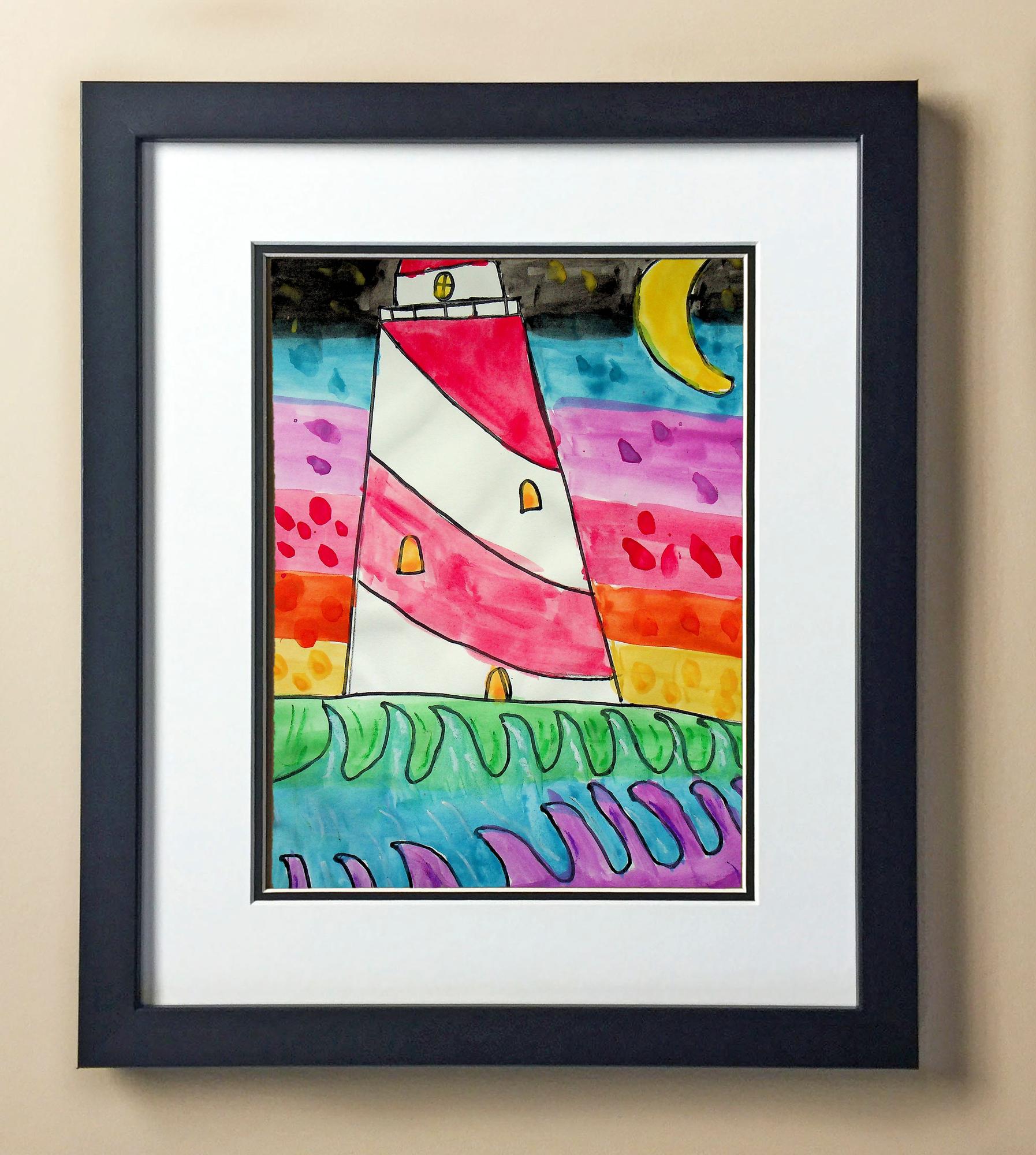 Included with the purchase is the Students Artwork, Frame, double matboard, shatter proof plexiglass, and a ready to hang backerboard with turnbuttons