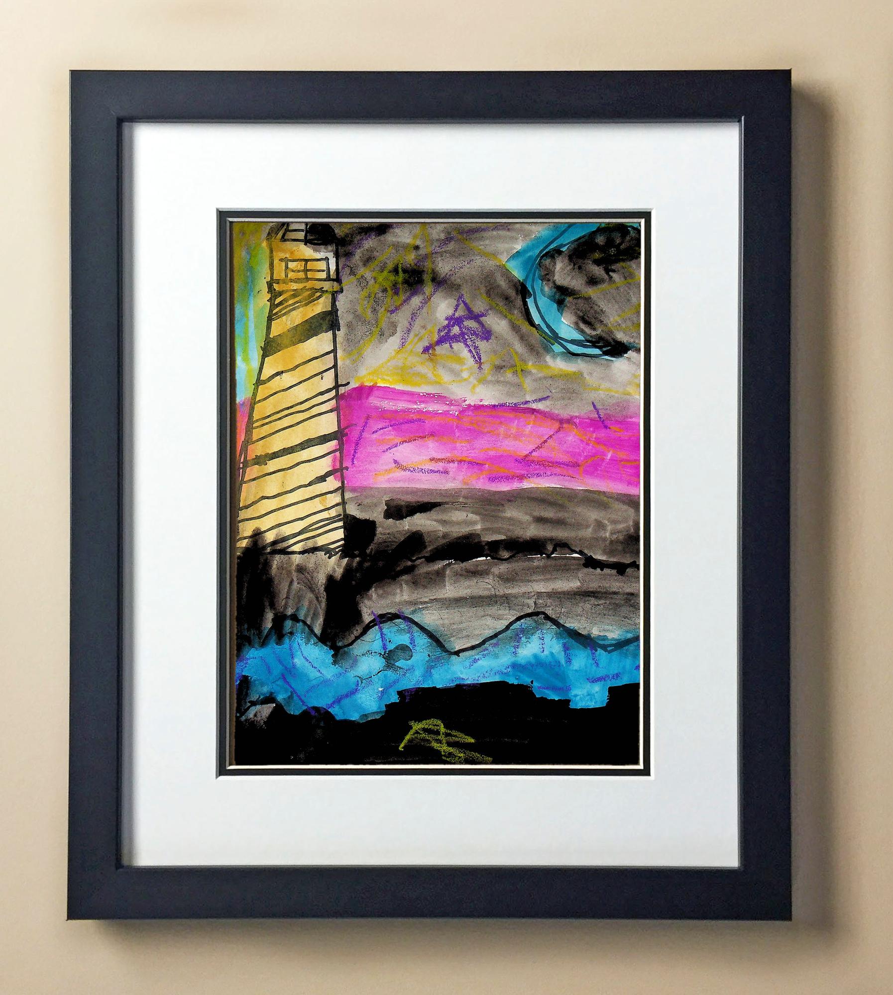 Included with the purchase is the Students Artwork, Frame, double matboard, shatter proof plexiglass, and a ready to hang backerboard with turnbuttons