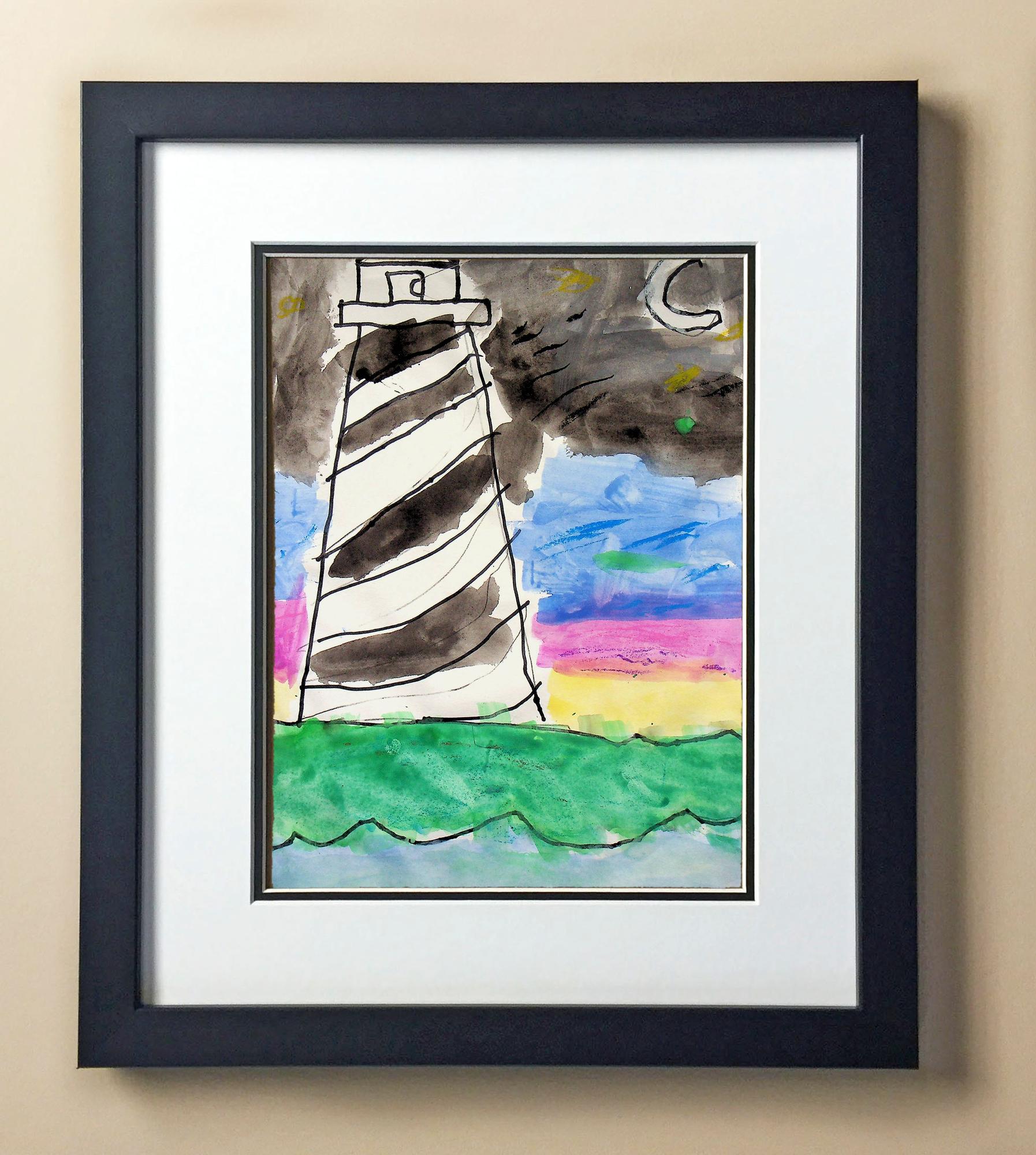 Included with the purchase is the Students Artwork, Frame, double matboard, shatter proof plexiglass, and a ready to hang backerboard with turnbuttons