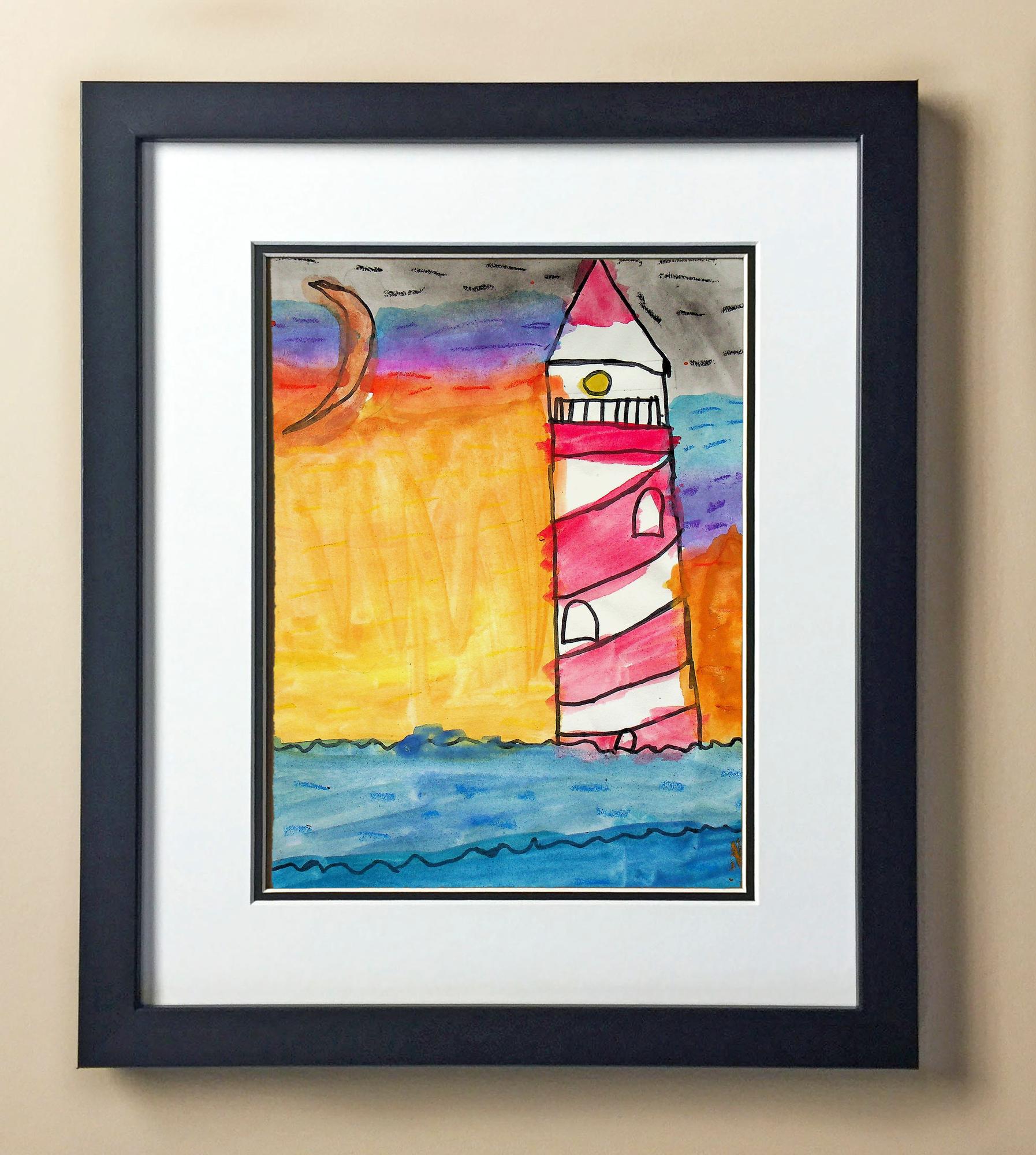 Included with the purchase is the Students Artwork, Frame, double matboard, shatter proof plexiglass, and a ready to hang backerboard with turnbuttons