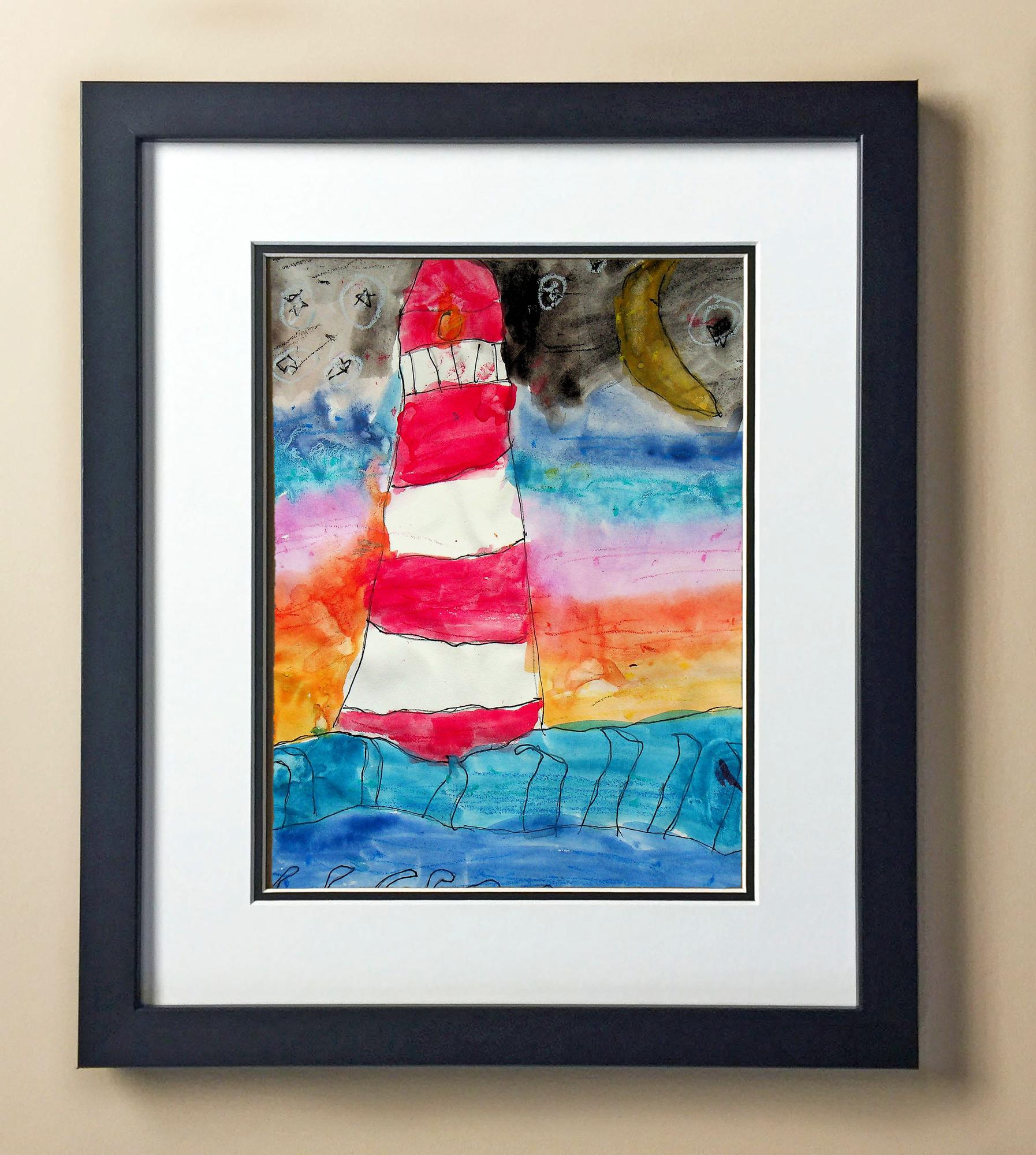 Included with the purchase is the Students Artwork, Frame, double matboard, shatter proof plexiglass, and a ready to hang backerboard with turnbuttons