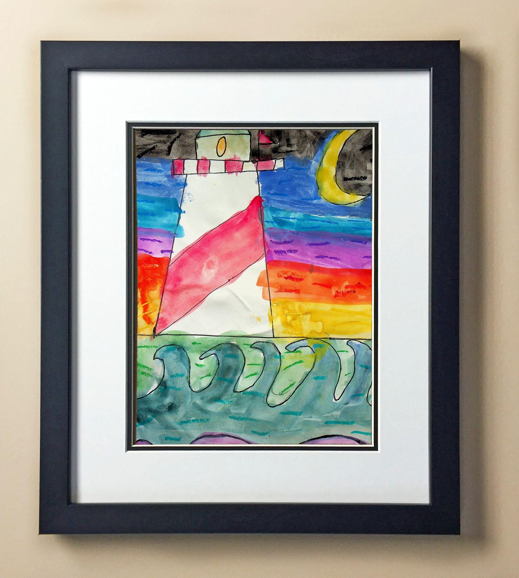 Included with the purchase is the Students Artwork, Frame, double matboard, shatter proof plexiglass, and a ready to hang backerboard with turnbuttons
