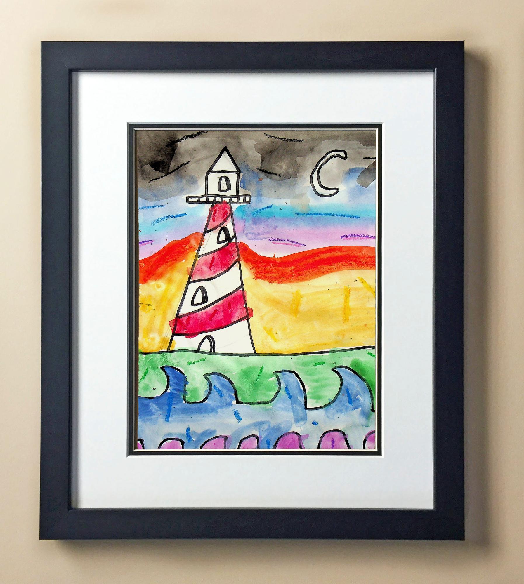Included with the purchase is the Students Artwork, Frame, double matboard, shatter proof plexiglass, and a ready to hang backerboard with turnbuttons
