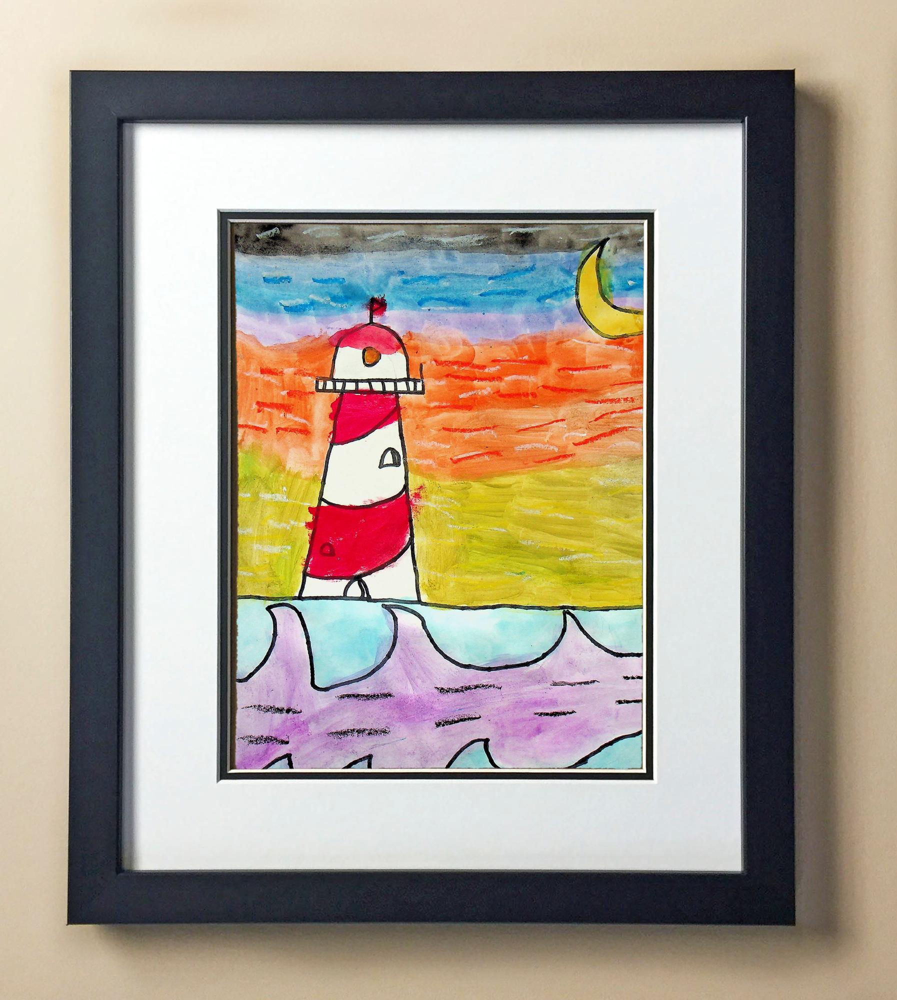 Included with the purchase is the Students Artwork, Frame, double matboard, shatter proof plexiglass, and a ready to hang backerboard with turnbuttons