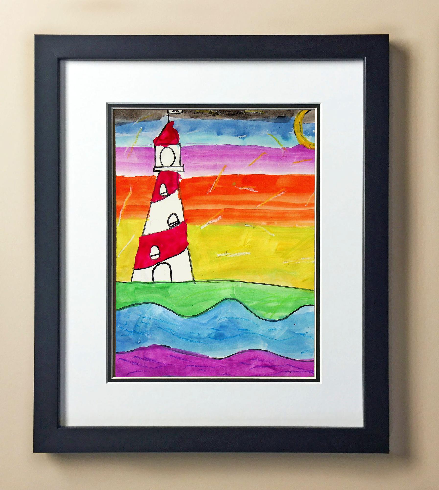 Included with the purchase is the Students Artwork, Frame, double matboard, shatter proof plexiglass, and a ready to hang backerboard with turnbuttons