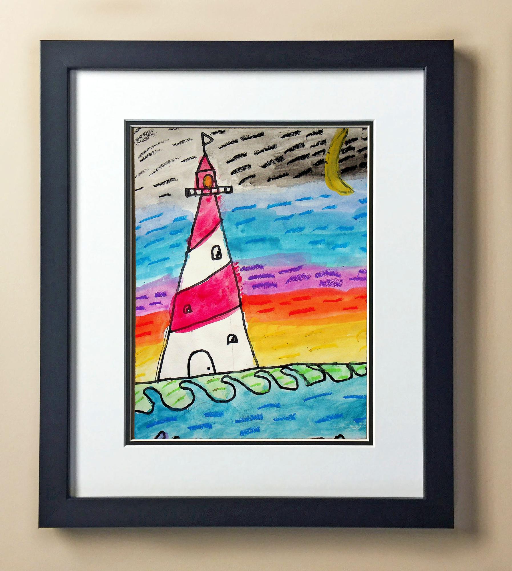 Included with the purchase is the Students Artwork, Frame, double matboard, shatter proof plexiglass, and a ready to hang backerboard with turnbuttons