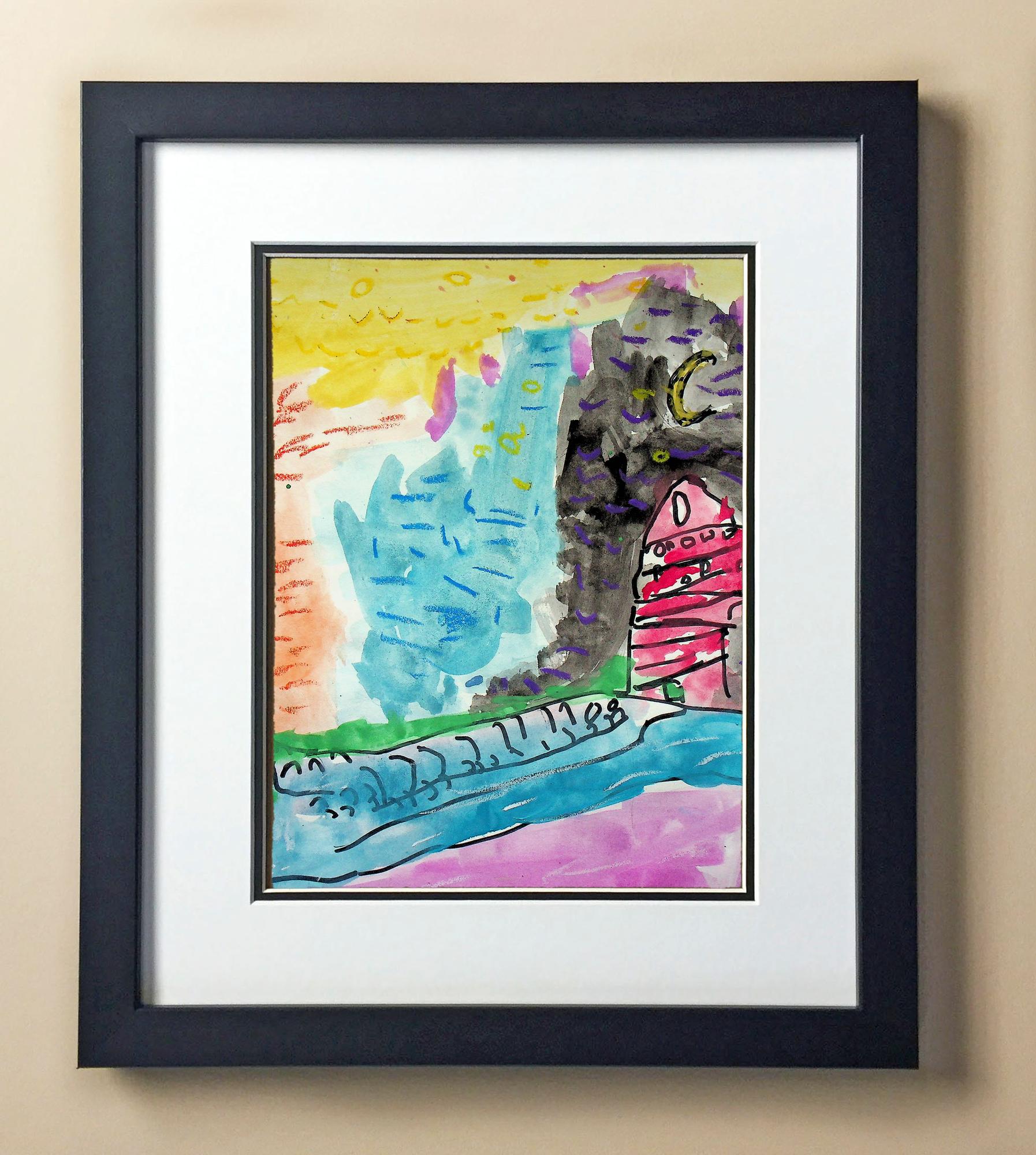 Included with the purchase is the Students Artwork, Frame, double matboard, shatter proof plexiglass, and a ready to hang backerboard with turnbuttons