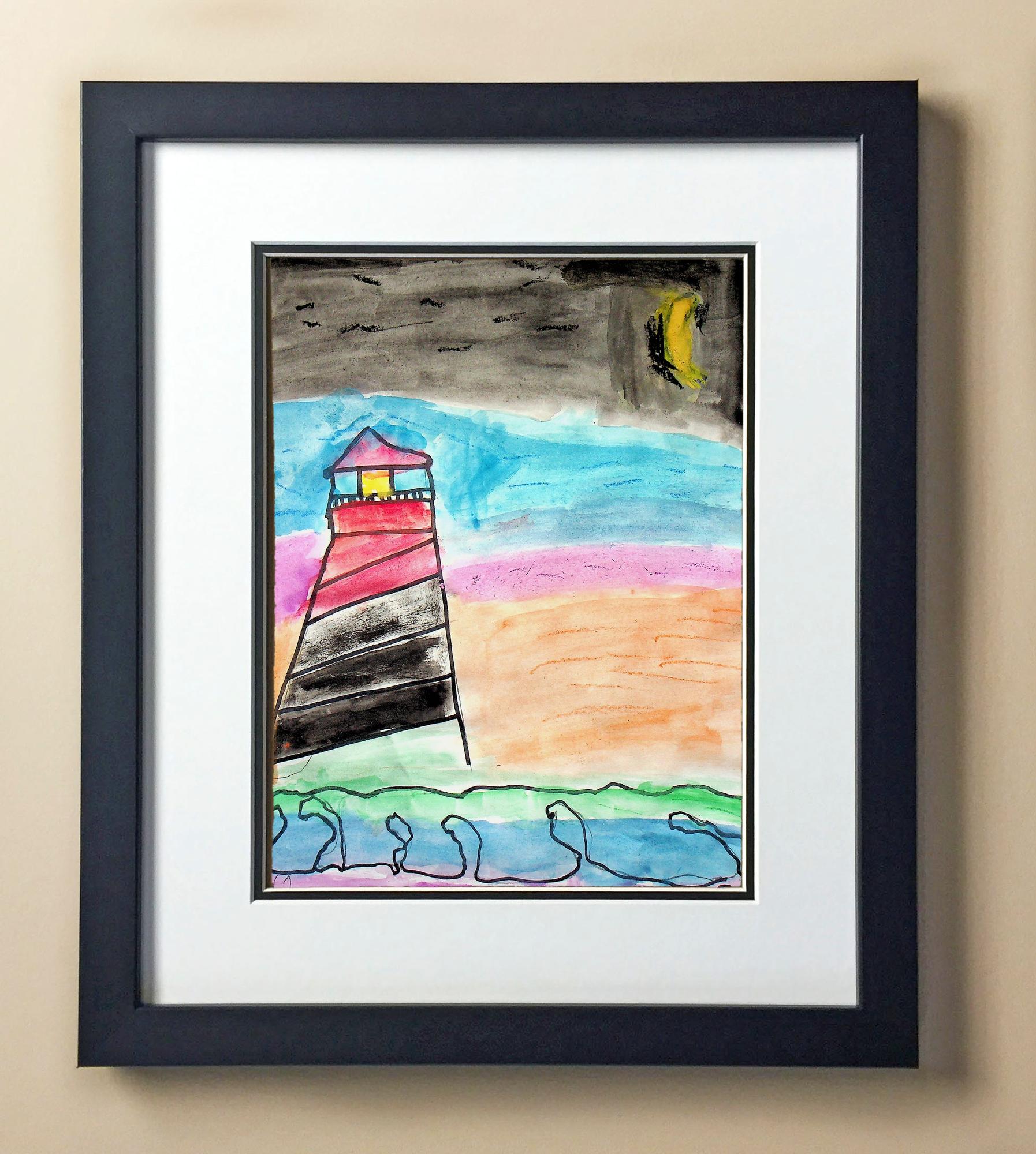 Included with the purchase is the Students Artwork, Frame, double matboard, shatter proof plexiglass, and a ready to hang backerboard with turnbuttons