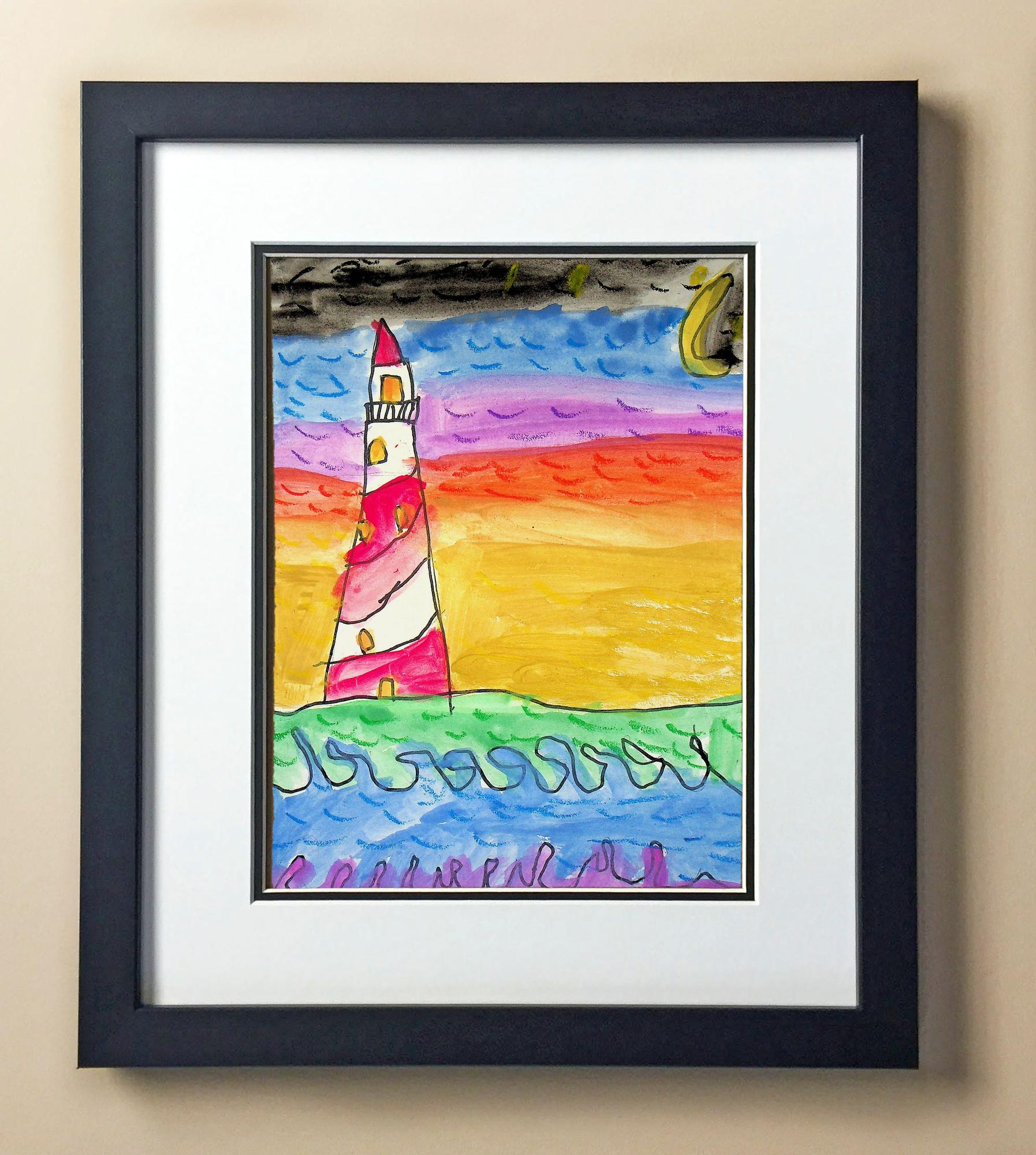 Included with the purchase is the Students Artwork, Frame, double matboard, shatter proof plexiglass, and a ready to hang backerboard with turnbuttons