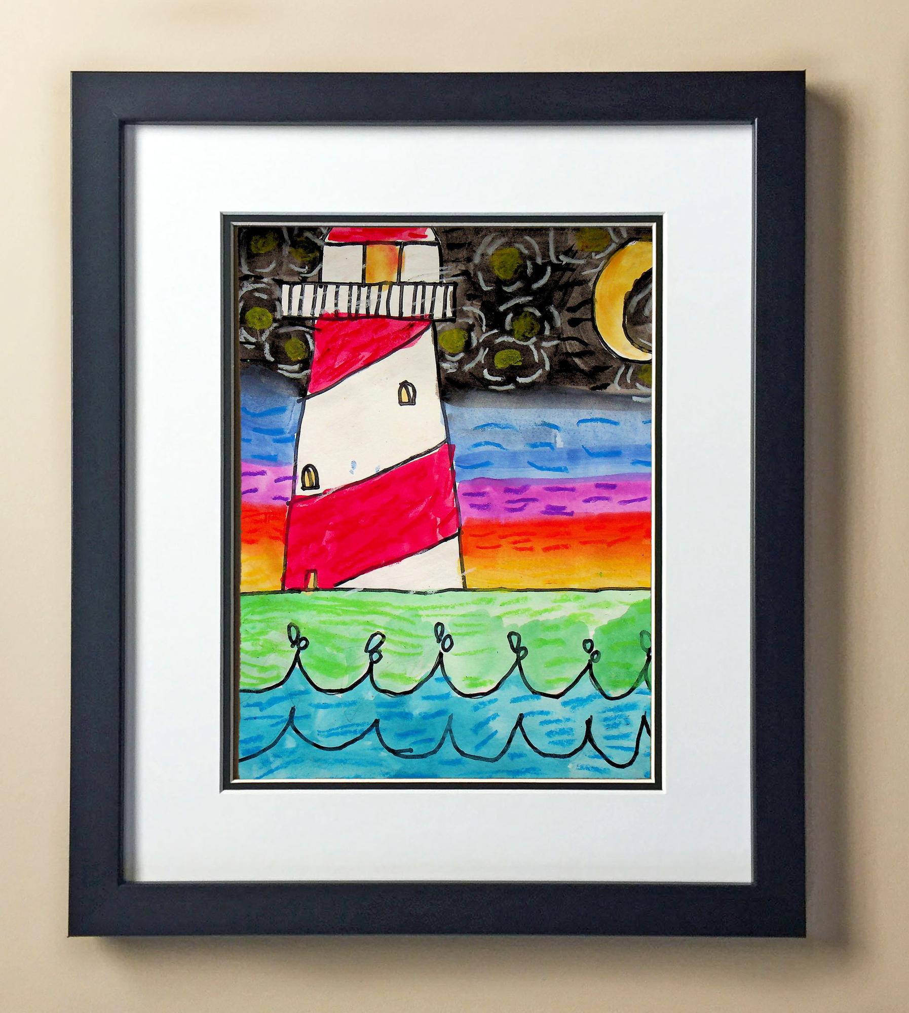 Included with the purchase is the Students Artwork, Frame, double matboard, shatter proof plexiglass, and a ready to hang backerboard with turnbuttons
