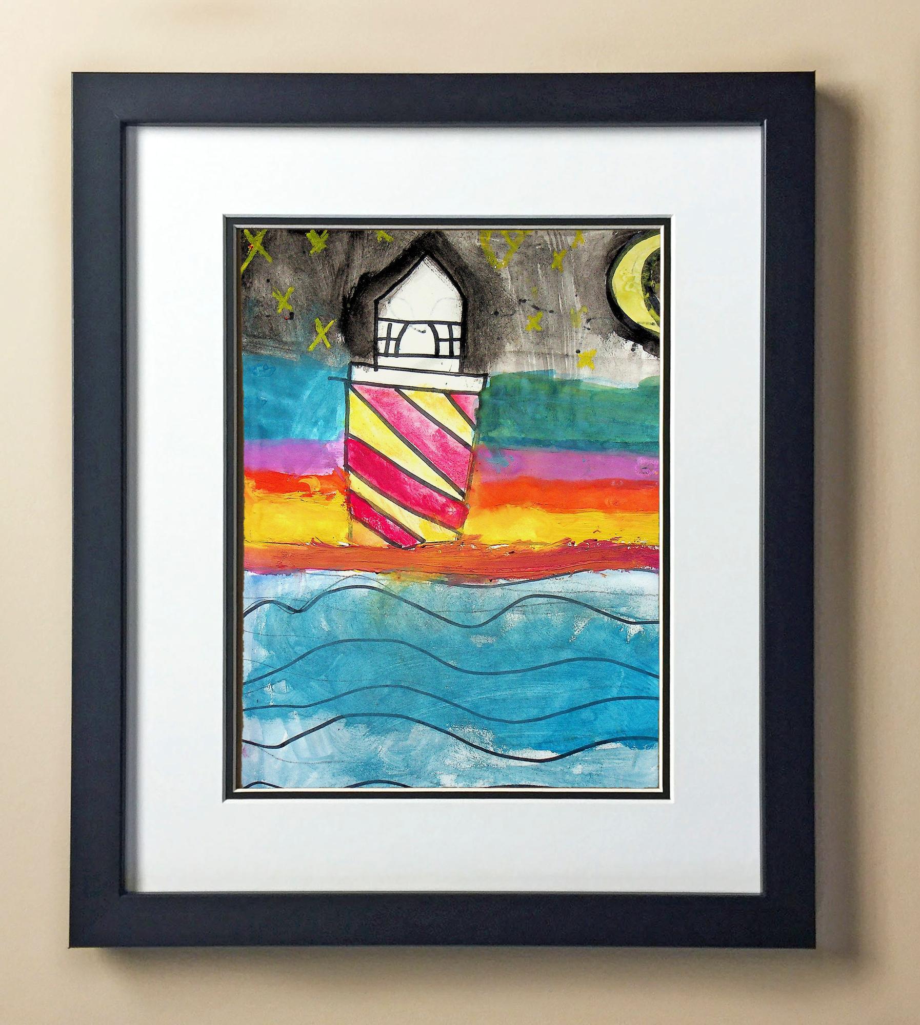 Included with the purchase is the Students Artwork, Frame, double matboard, shatter proof plexiglass, and a ready to hang backerboard with turnbuttons
