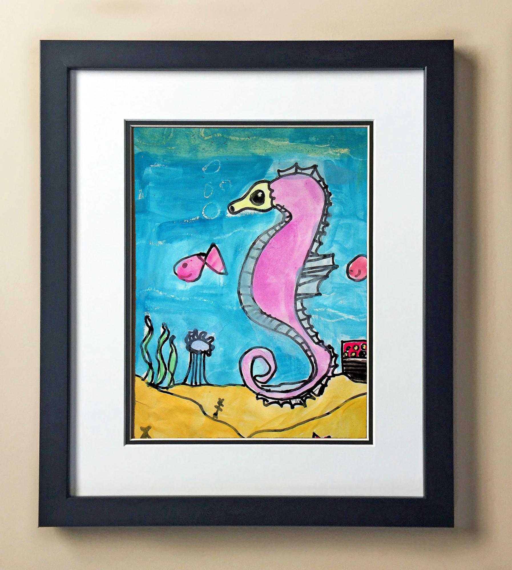 Included with the purchase is the Students Artwork, Frame, double matboard, shatter proof plexiglass, and a ready to hang backerboard with turnbuttons