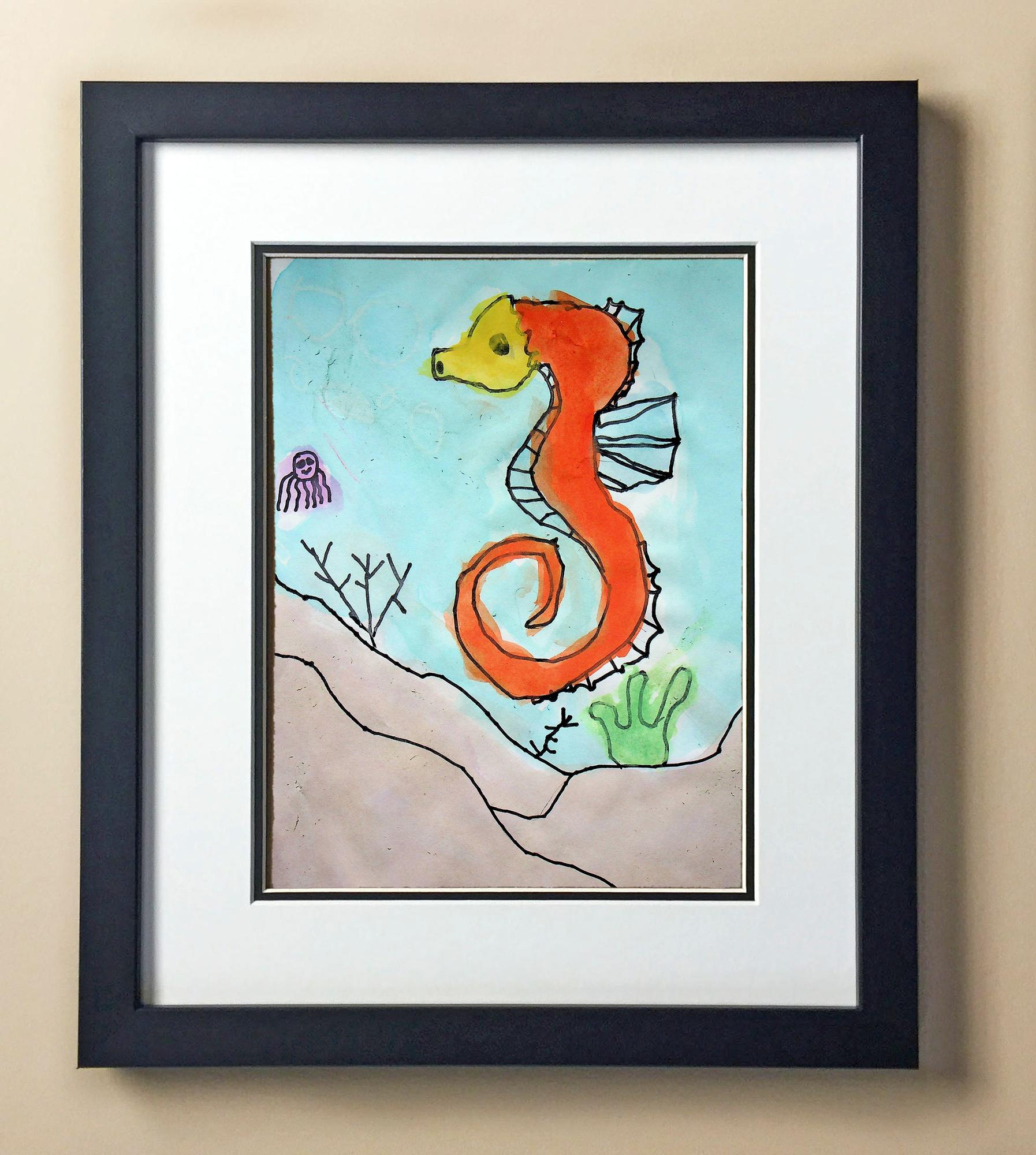 Included with the purchase is the Students Artwork, Frame, double matboard, shatter proof plexiglass, and a ready to hang backerboard with turnbuttons