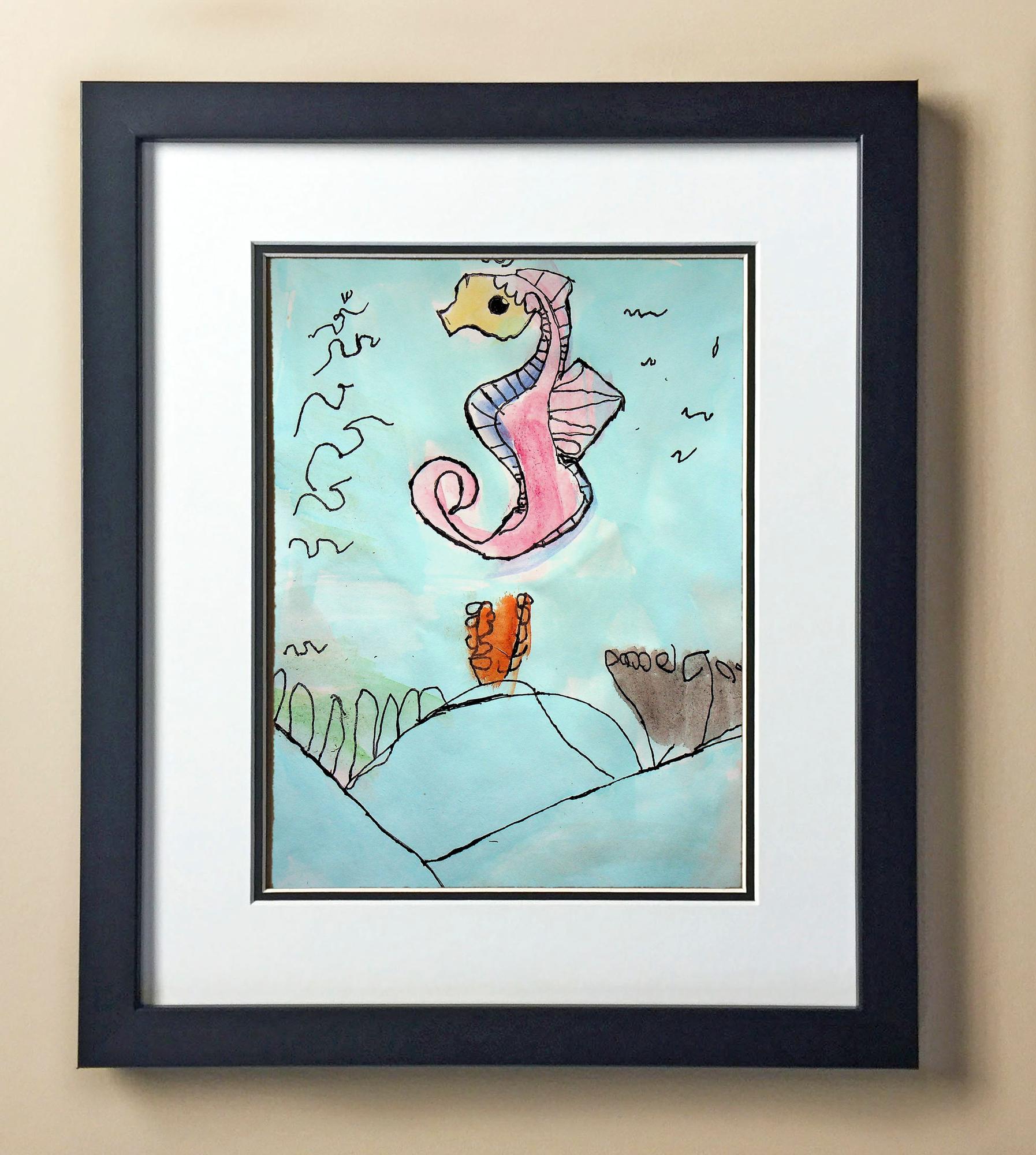 Included with the purchase is the Students Artwork, Frame, double matboard, shatter proof plexiglass, and a ready to hang backerboard with turnbuttons