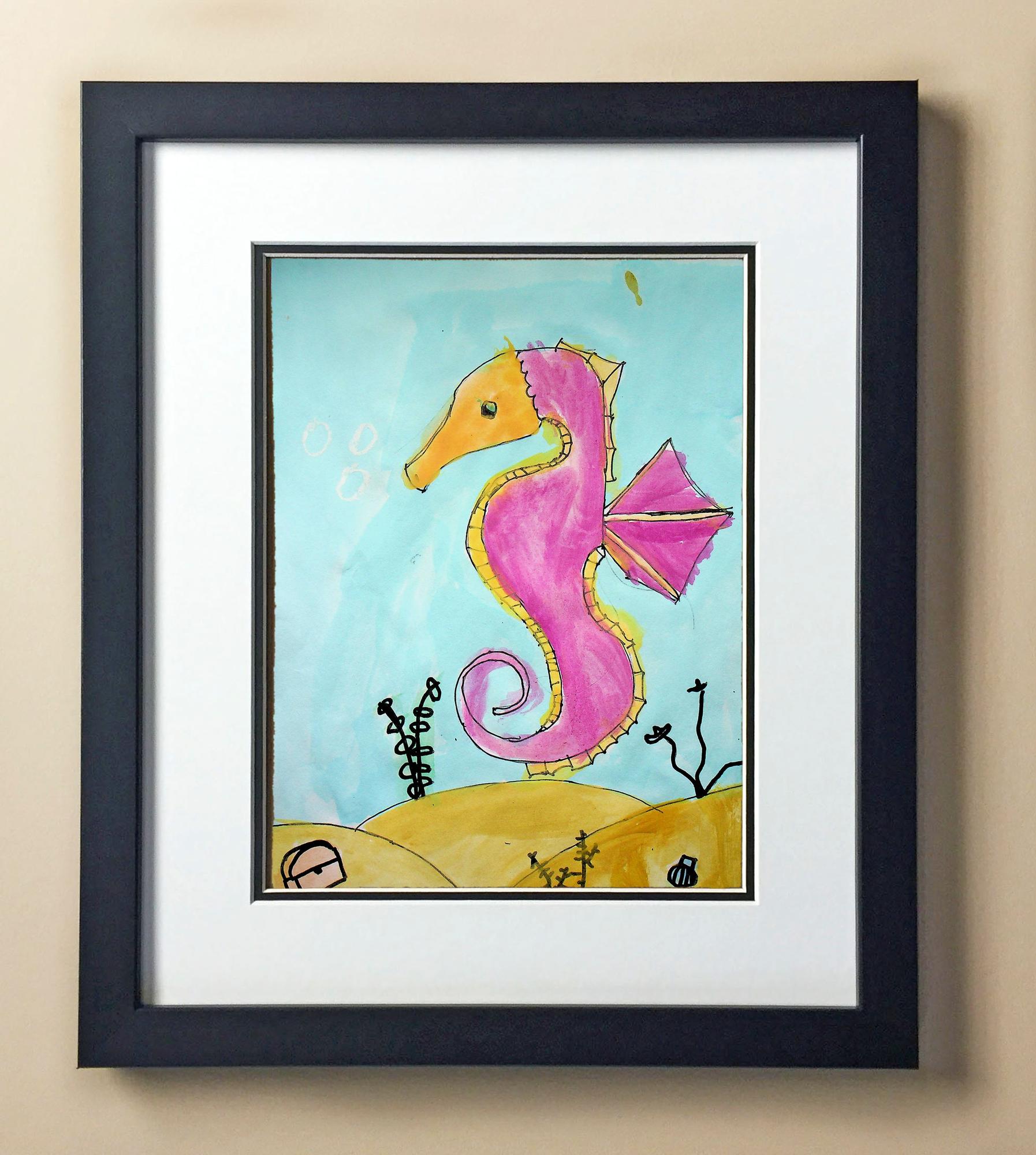Included with the purchase is the Students Artwork, Frame, double matboard, shatter proof plexiglass, and a ready to hang backerboard with turnbuttons