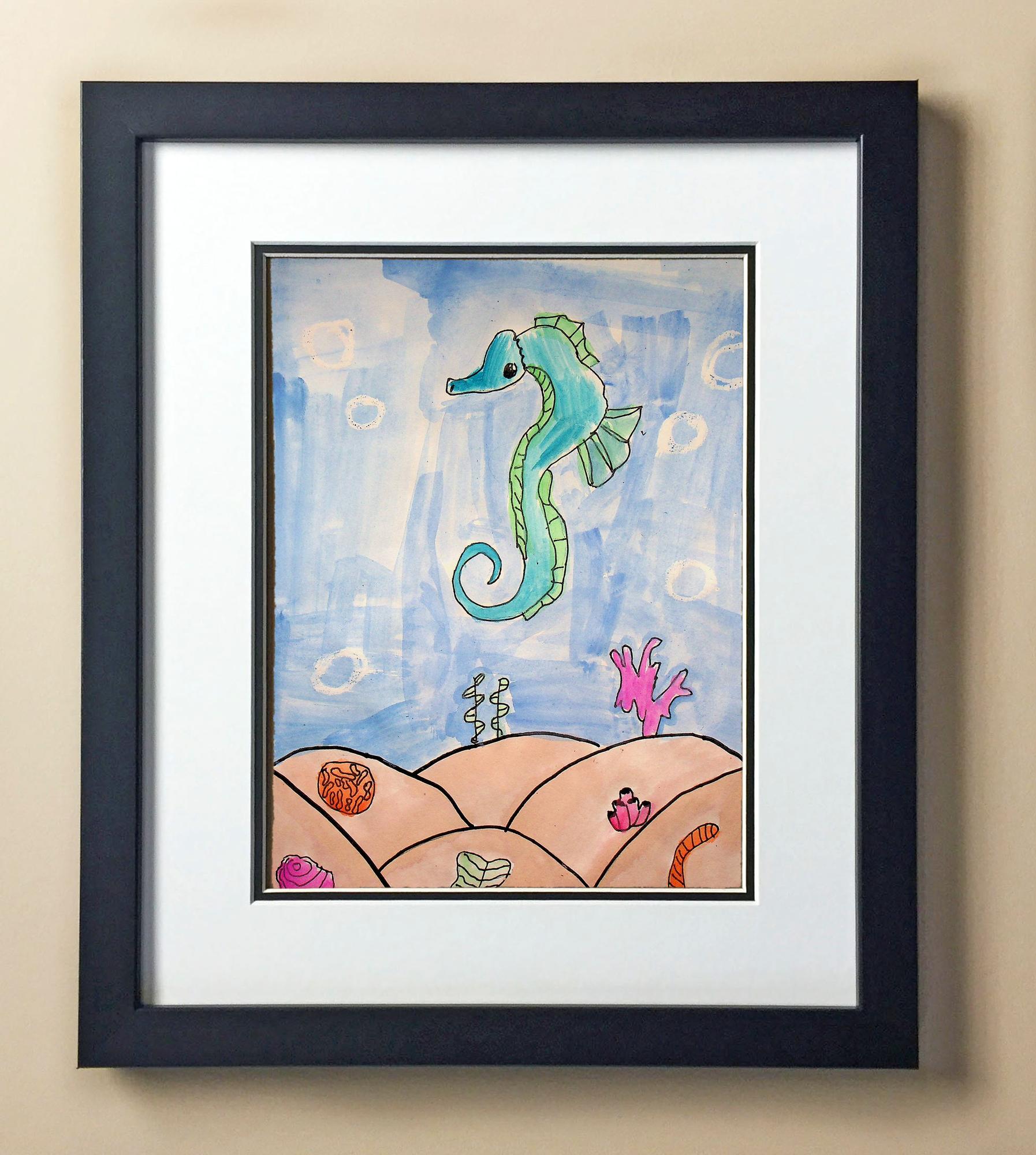 Included with the purchase is the Students Artwork, Frame, double matboard, shatter proof plexiglass, and a ready to hang backerboard with turnbuttons