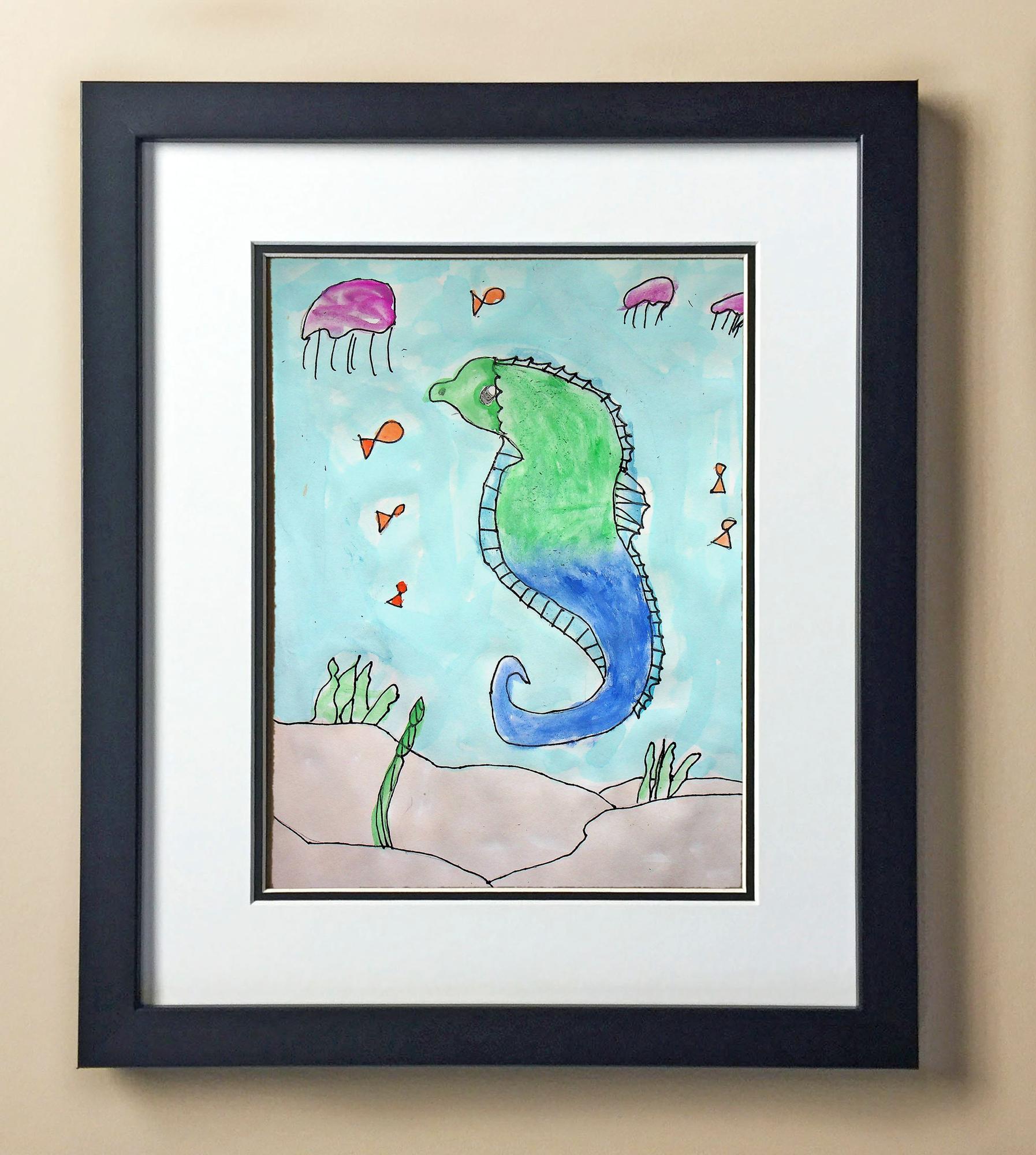 Included with the purchase is the Students Artwork, Frame, double matboard, shatter proof plexiglass, and a ready to hang backerboard with turnbuttons