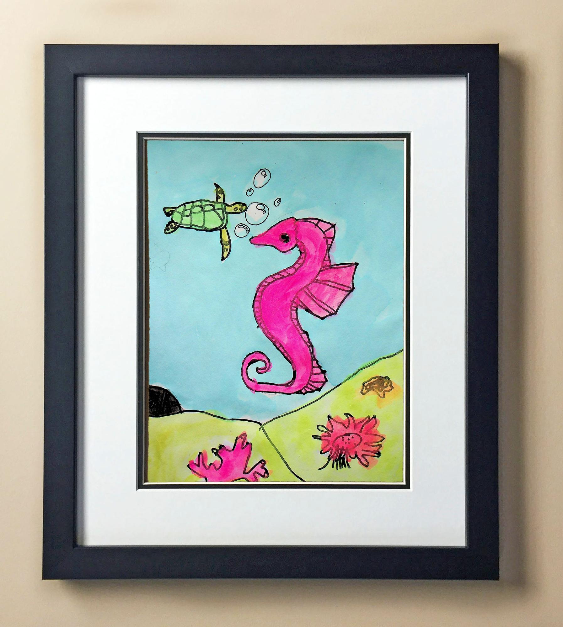 Included with the purchase is the Students Artwork, Frame, double matboard, shatter proof plexiglass, and a ready to hang backerboard with turnbuttons