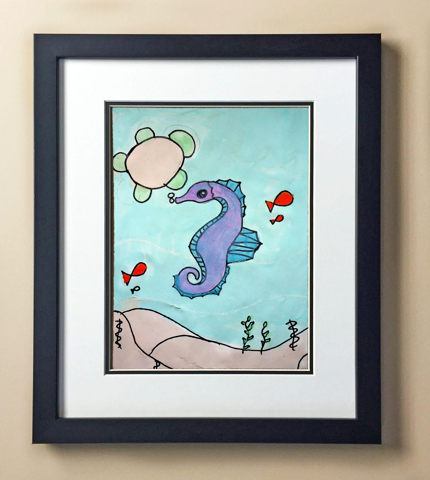 Included with the purchase is the Students Artwork, Frame, double matboard, shatter proof plexiglass, and a ready to hang backerboard with turnbuttons
